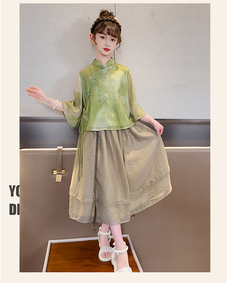 Hanfu 소녀 여름 어린이 스타일 원피스 슈퍼 요정 개선 2023 새로운 큰 어린이 고대 원피스 여름 원피스