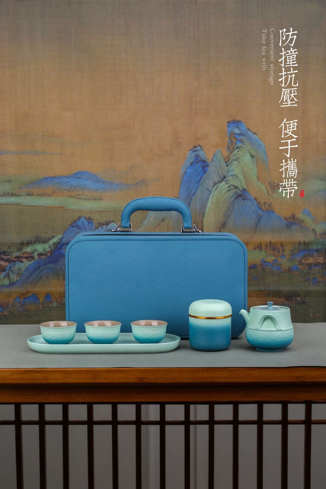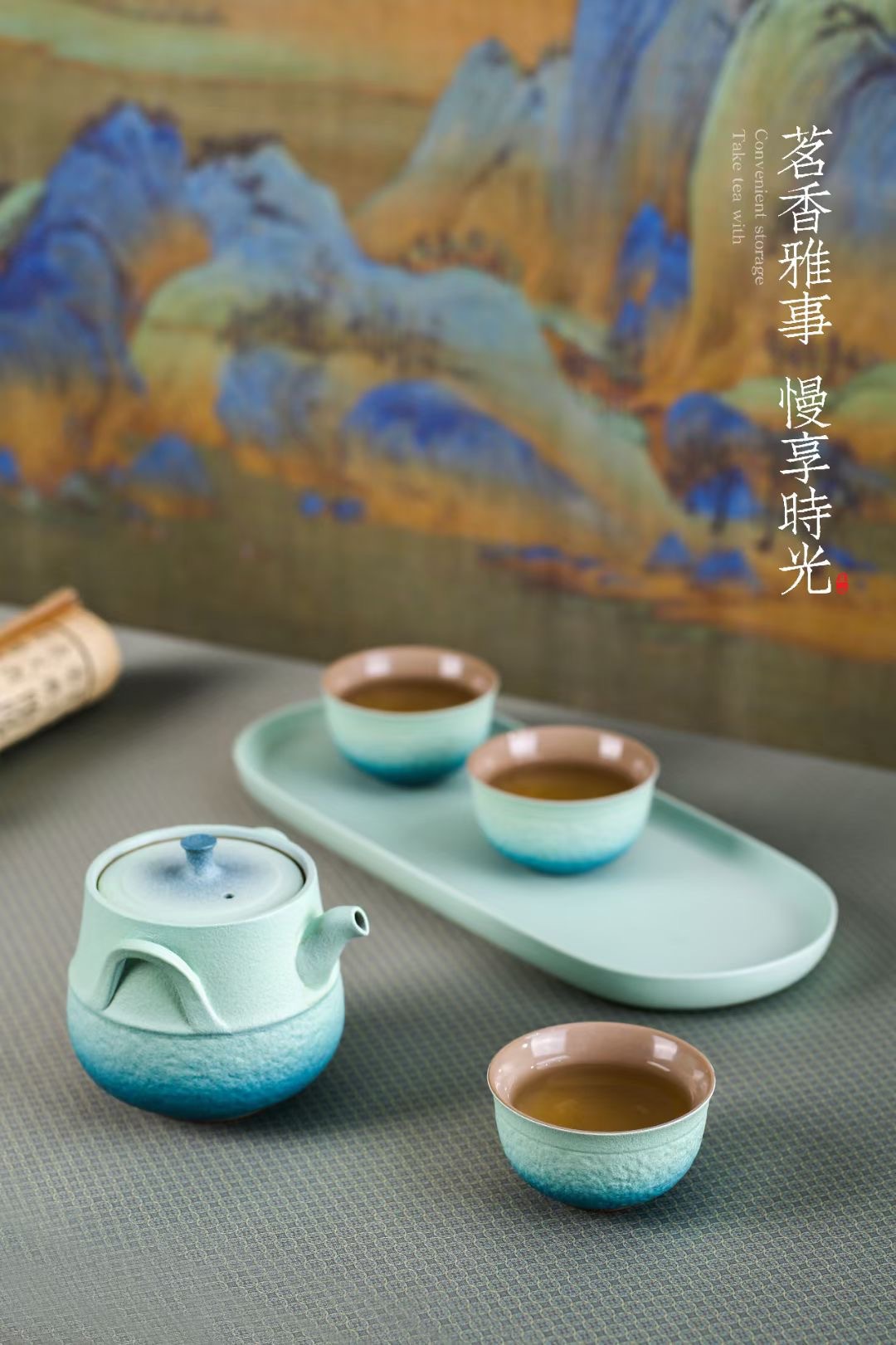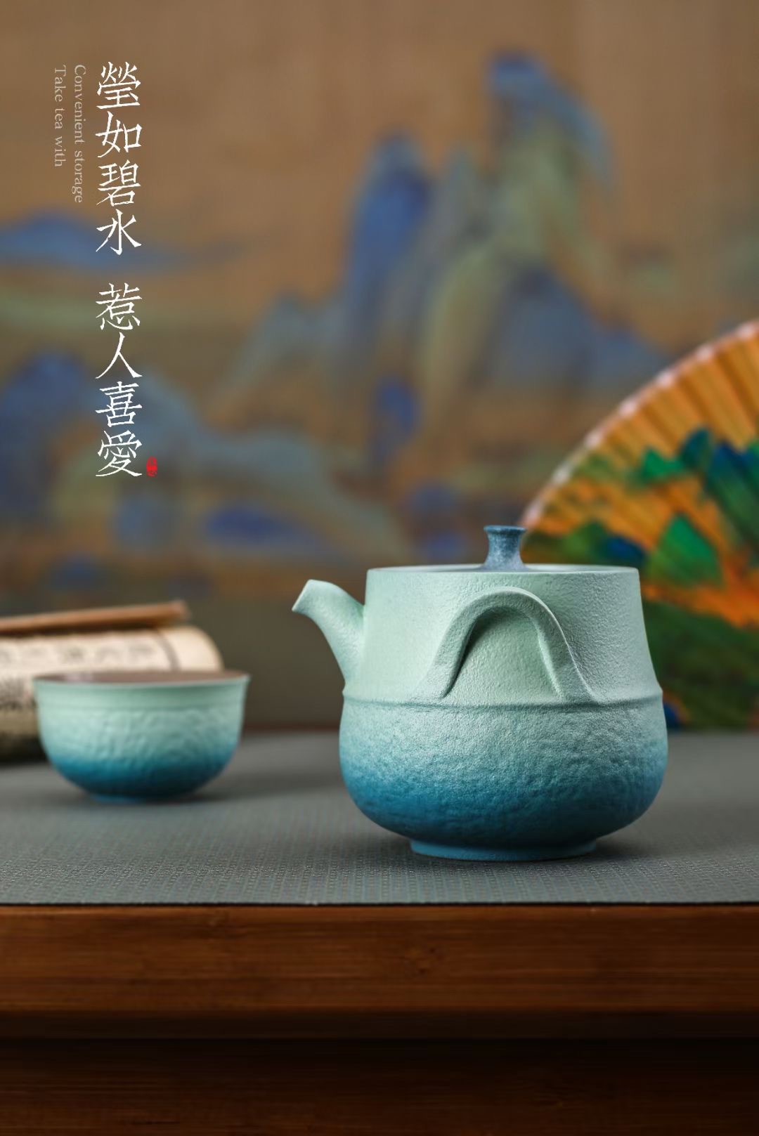 창조적 인 세라믹 여행 차 세트 세트 휴대용 거친 도자기 주전자 기업 선물 동반 인쇄 된 로고스토어 가기
