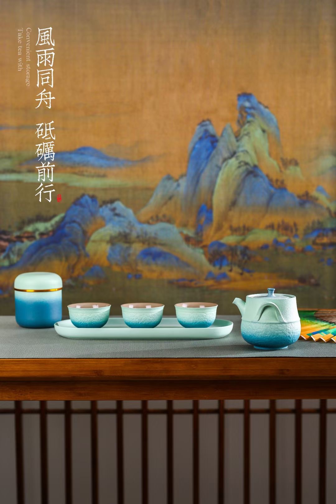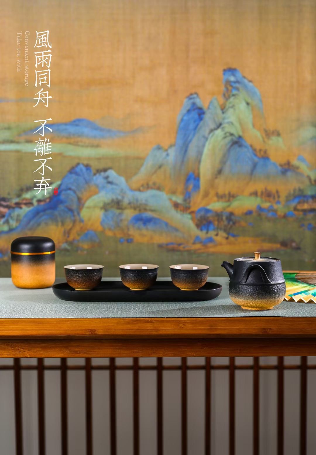 创意陶瓷旅行茶具套装便携粗陶泡茶壶企业礼品伴手礼一件起印logo