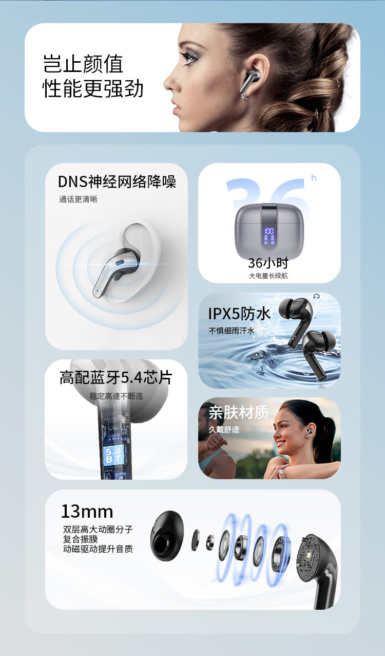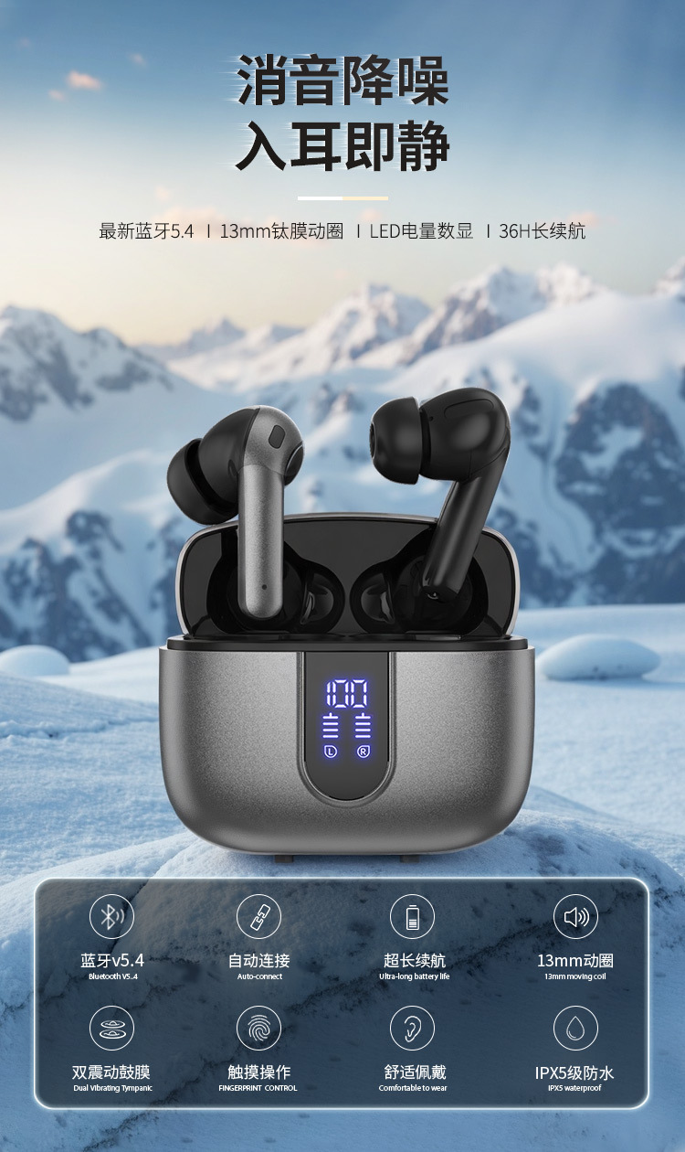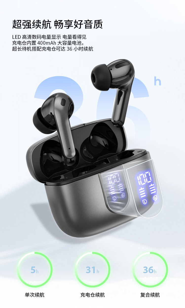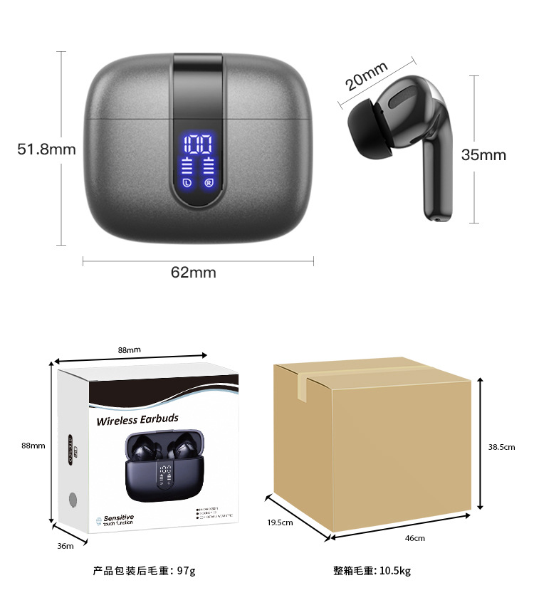 지능형 소음 감소 디지털 디스플레이 방수 무선 이어 버드 헤드셋 Huaqiangbei 개인 모델 비즈니스 Bluetooth 무선 긴 배터리 수명