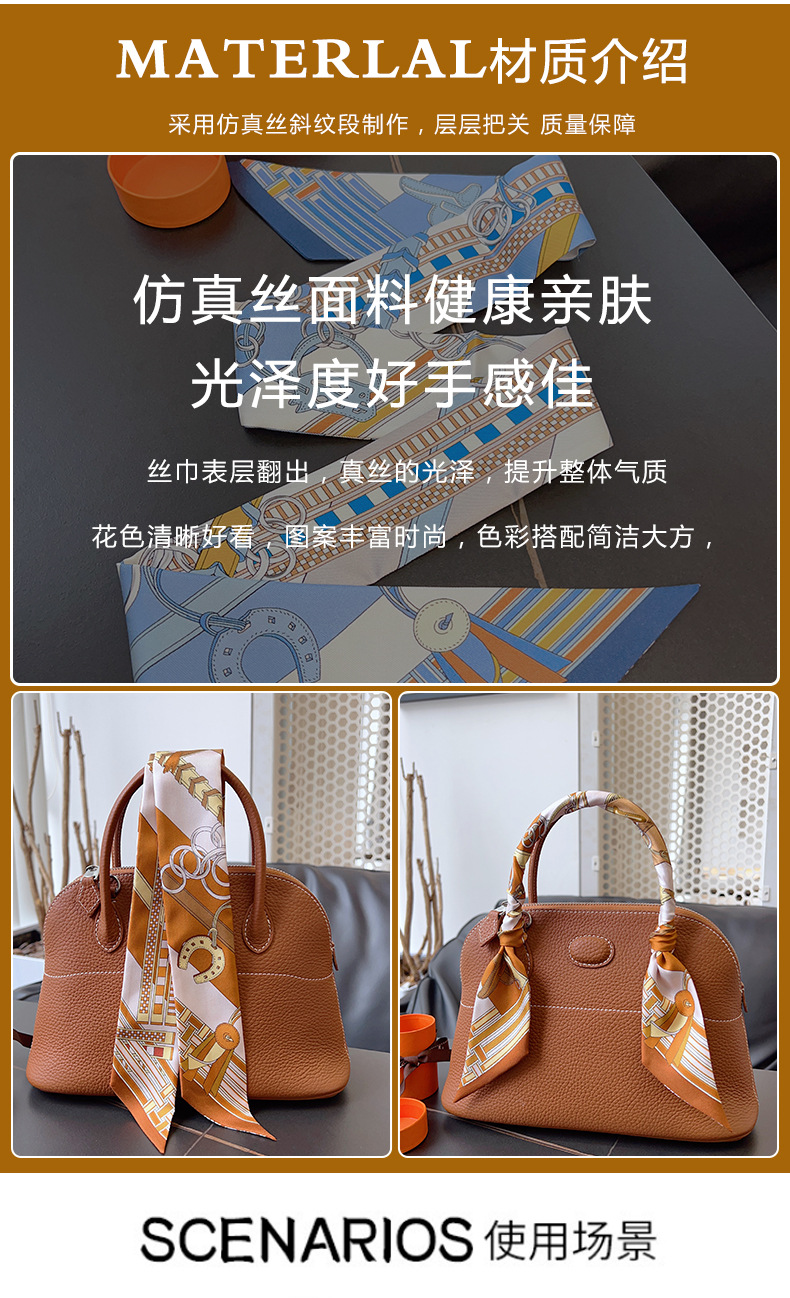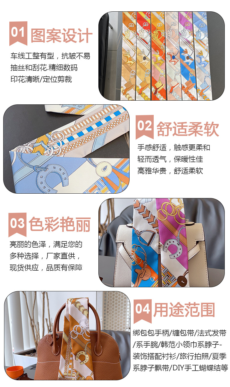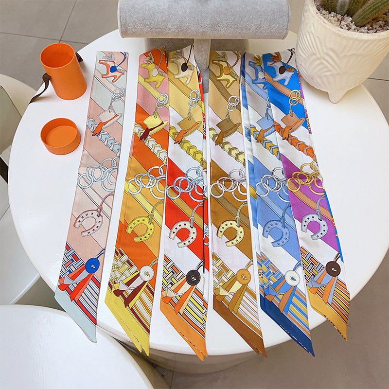 새로운 스타일 고삐 작은 실크 스카프 장식 인쇄 포장 가방 핸들 날씬한 실크 DIY 수제 헤어 밴드