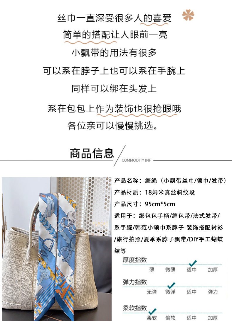 새로운 스타일 고삐 작은 실크 스카프 장식 인쇄 포장 가방 핸들 날씬한 실크 DIY 수제 헤어 밴드스토어 가기