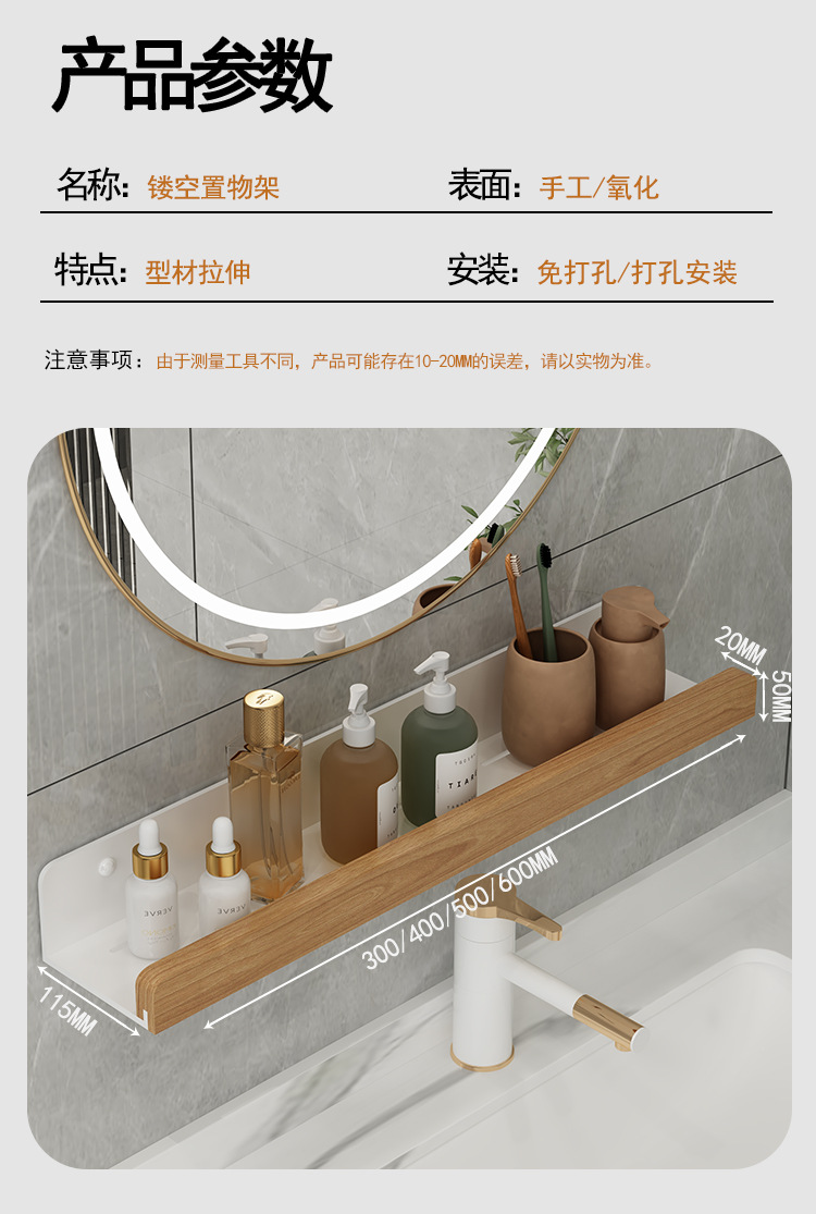 화장실 거울 전면 수납 랙 세척 테이블 배수 보관 랙 펀치 프리 화장실 수도꼭지 세면기 보관 랙