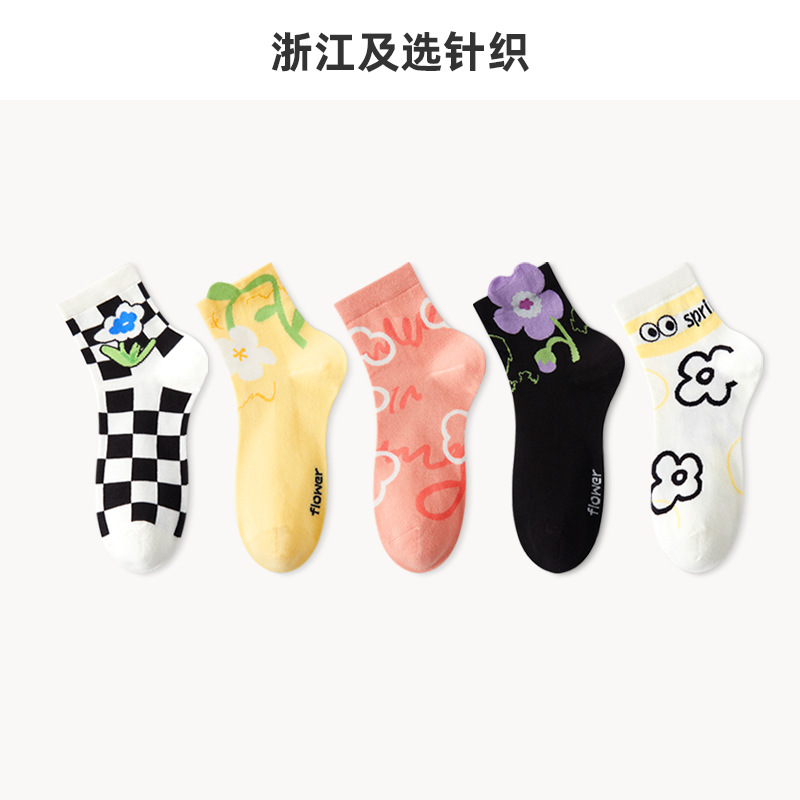 Lumi New Style 양말 여성용 양말 트렌디 한 중형 양말 귀여운 만화 입체 꽃 튤립 여성용 면 양말스토어 가기