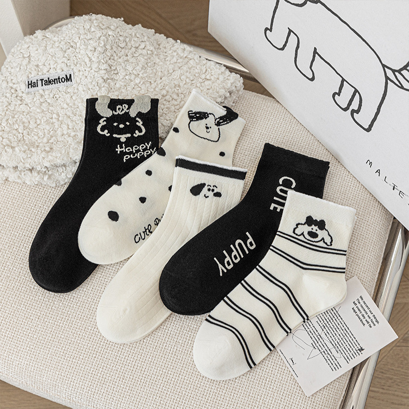 Lumi New Style 양말 여성용 양말 트렌디 한 중형 양말 귀여운 만화 입체 꽃 튤립 여성용 면 양말
