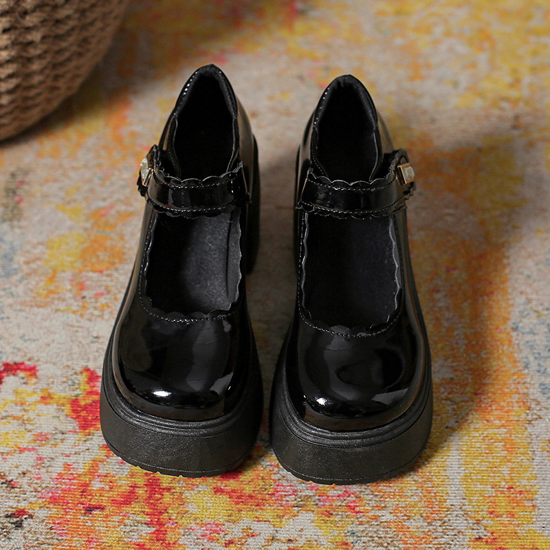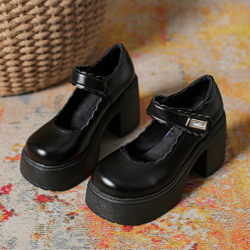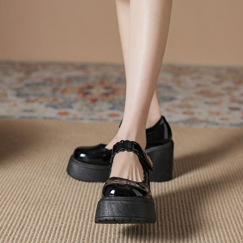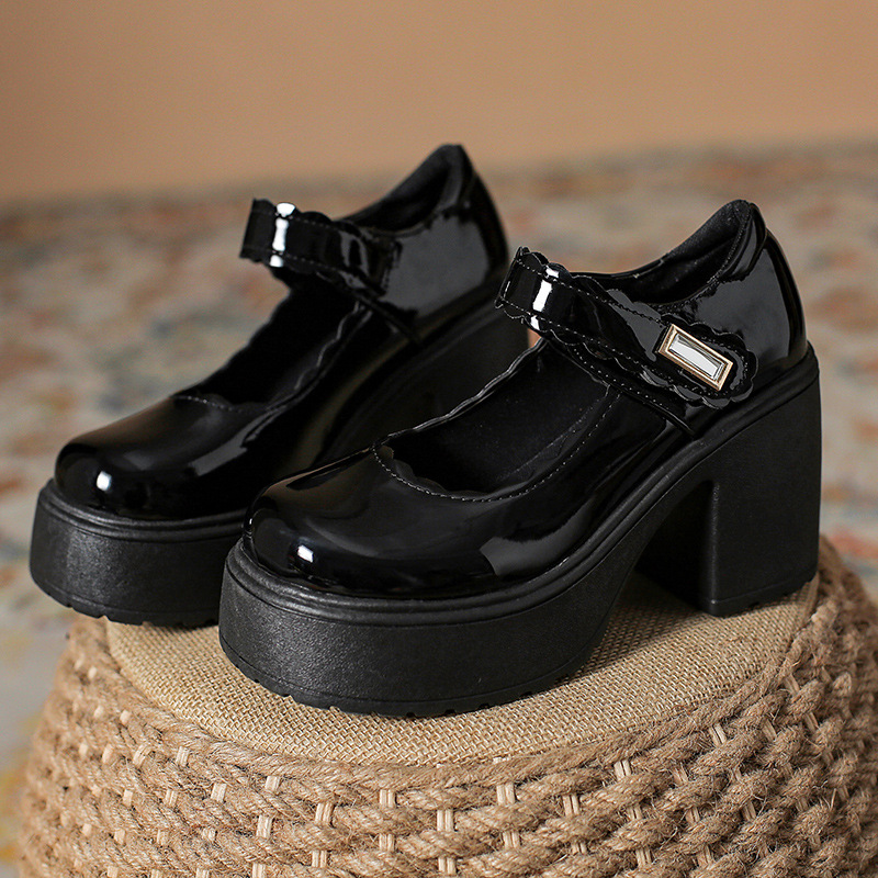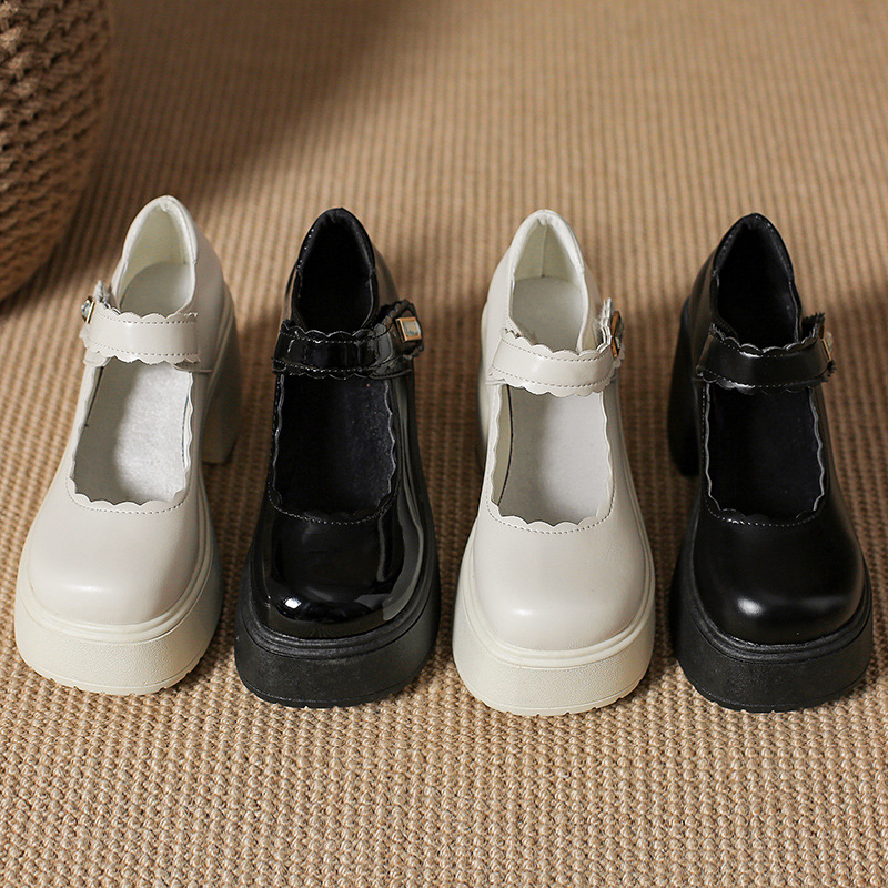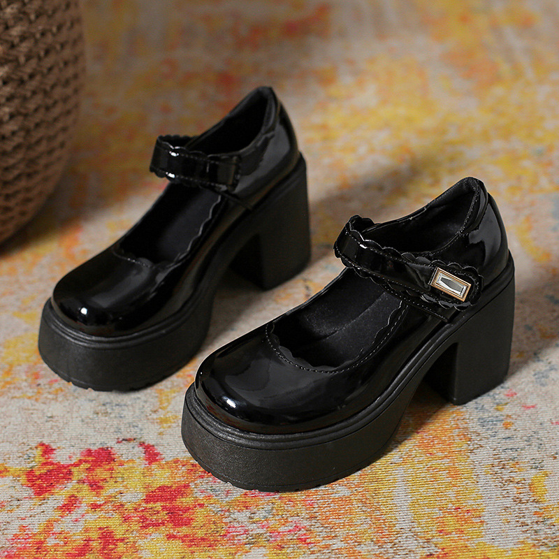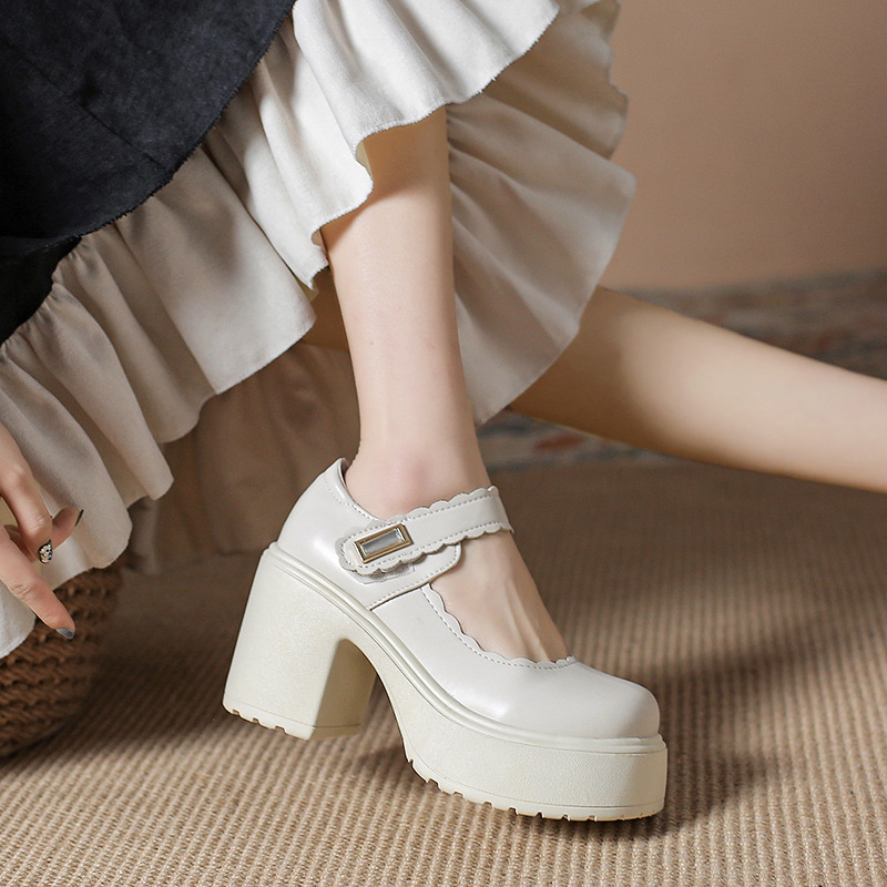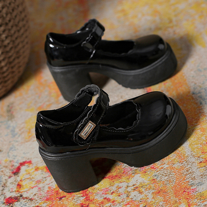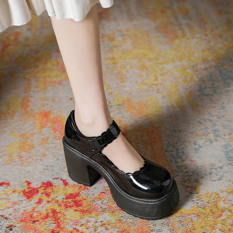 영국 스타일의 작은 가죽 신발 여성용 2023 봄과 가을 새로운 두꺼운 바닥 머핀 10cm Mary Jane 두꺼운 굽 하이힐 신발스토어 가기
