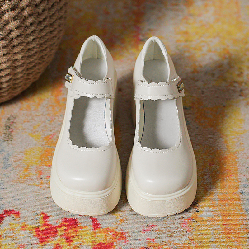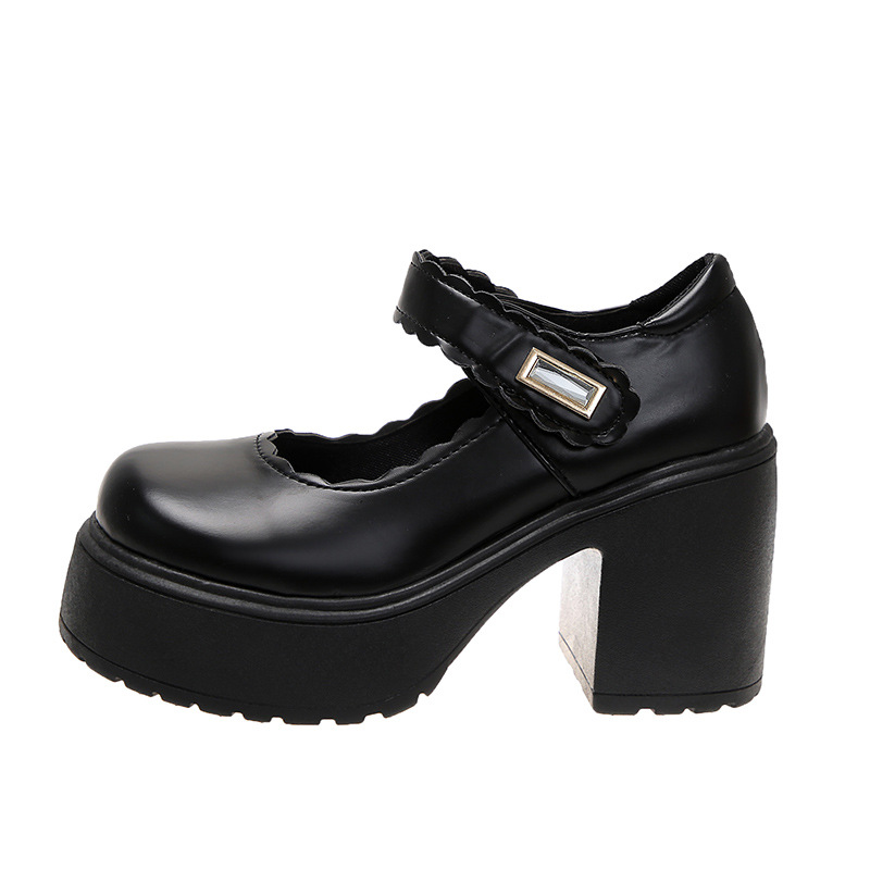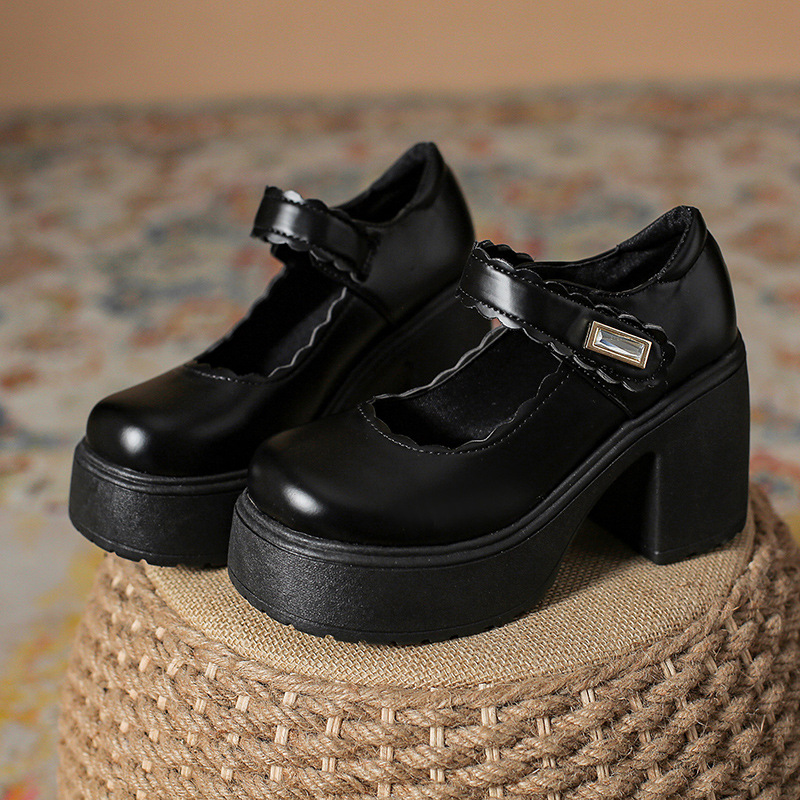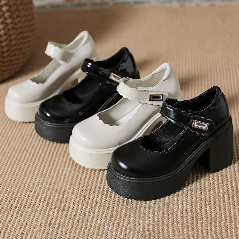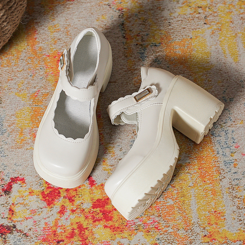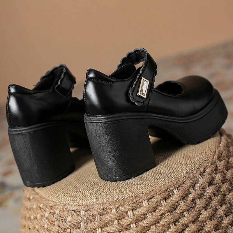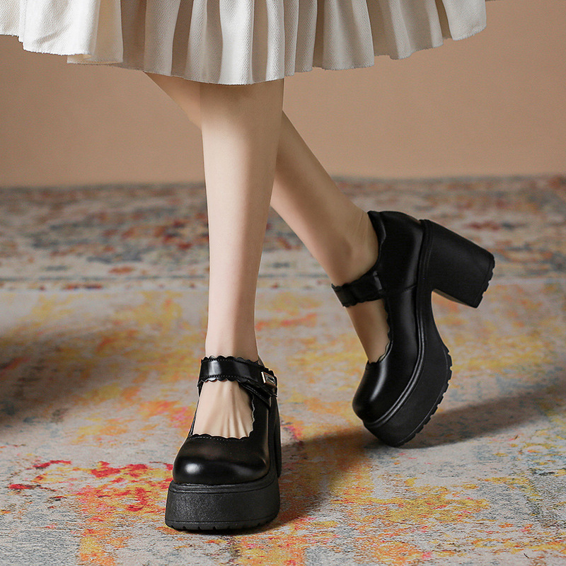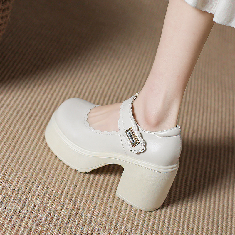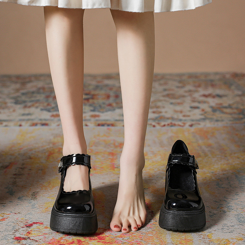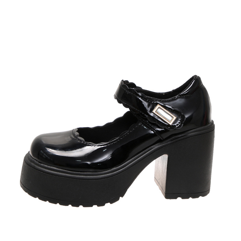 영국 스타일의 작은 가죽 신발 여성용 2023 봄과 가을 새로운 두꺼운 바닥 머핀 10cm Mary Jane 두꺼운 굽 하이힐 신발스토어 가기