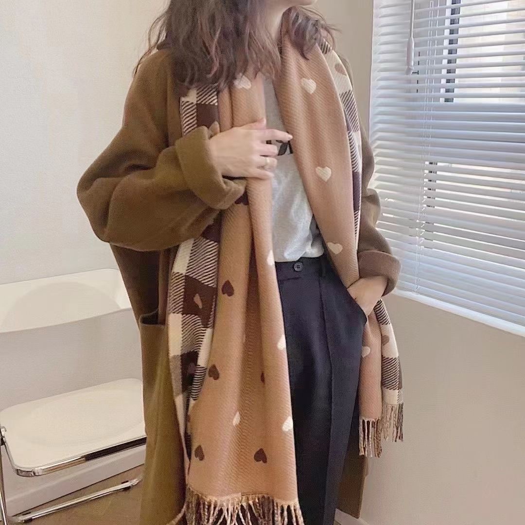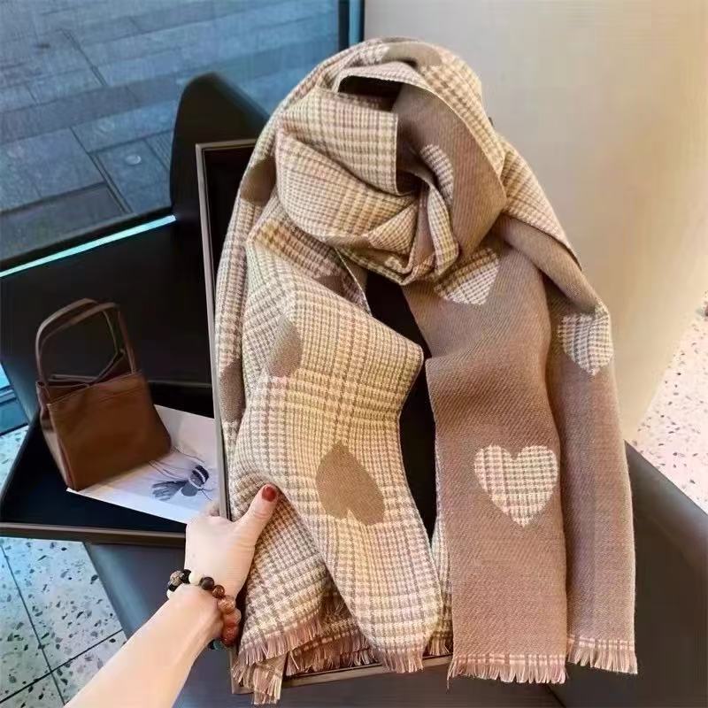 양면 사랑 그리드 네트 레드 캐시미어 여성용 겨울 모든 경기 한국식 대형 목도리 스카프 따뜻한 두꺼운 스카프스토어 가기