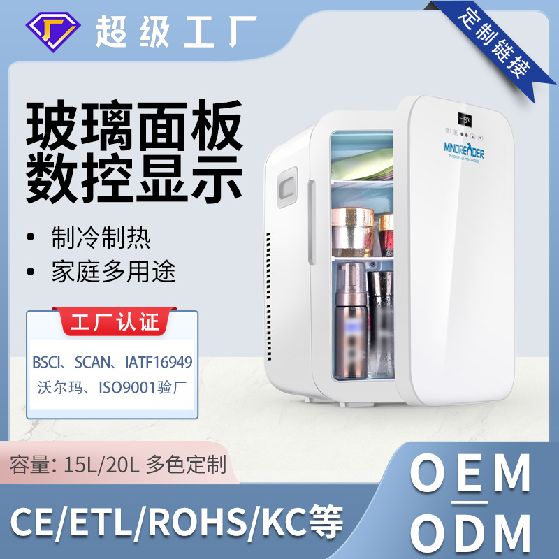 맞춤형 15/20L 휴대용 자동차 냉장고 CNC 미니 냉장고 가정용 및 자동차 이중 용도 유리 패널 소형 냉장고 처리
