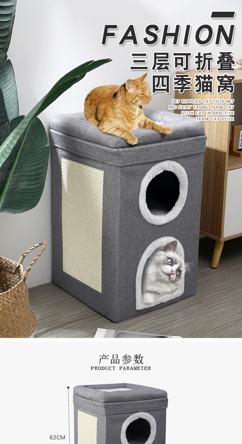 접이식 고양이 집, 사계절 사용 가능, 3층 사자수염 매트, 발톱 갈이 고양이 집, 가정용 애완용품, 고양이 침대, 고양이 빌라