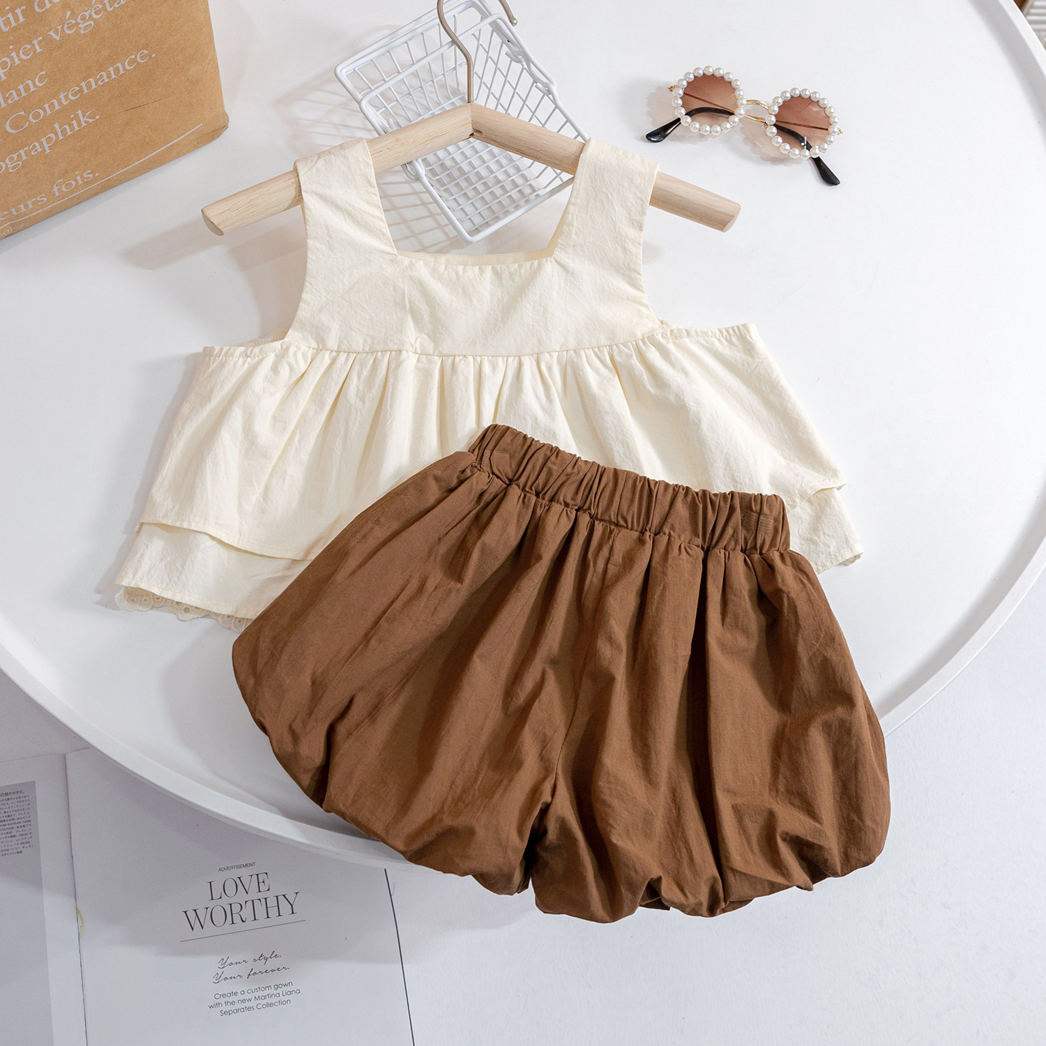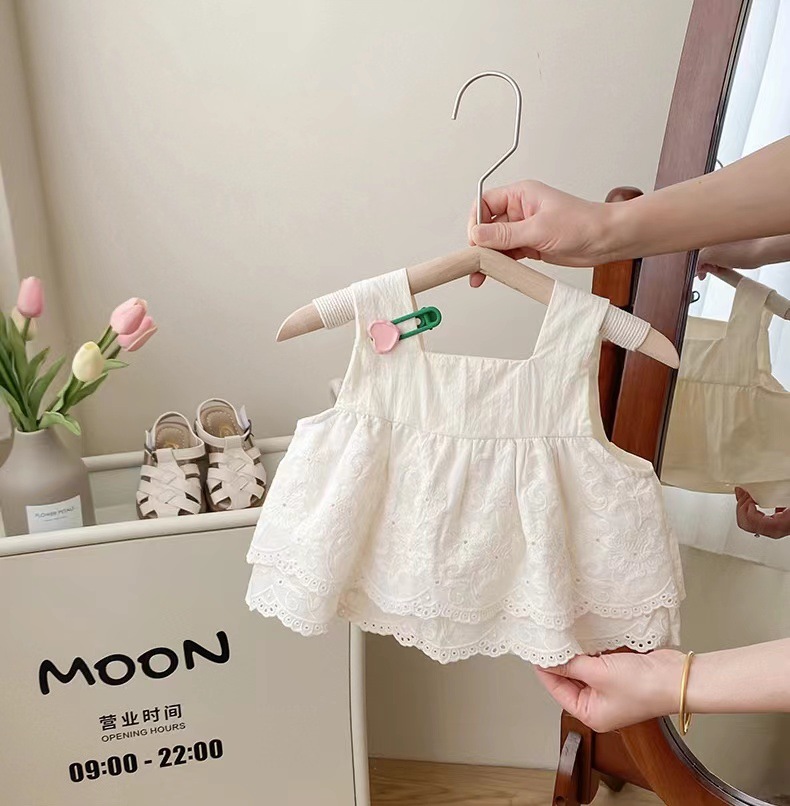 儿童新中式花边蕾丝吊带套装女童洋气方领刺绣娃娃衫花苞裤两件套
