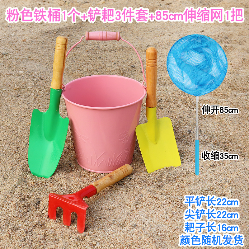 • 핑크 철 양동이 + 삽 갈퀴 3 종 세트 + 텔레스코픽 낚시 그물 1 (85cm)