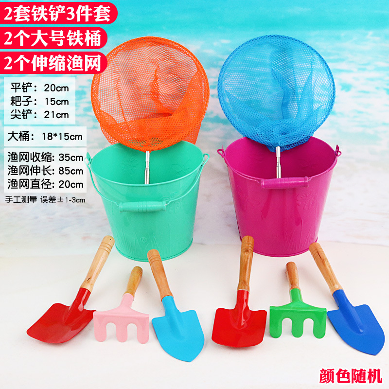 • 대형 철 양동이 2 + 2 세트 삽 3 개 + 2 낚시 그물