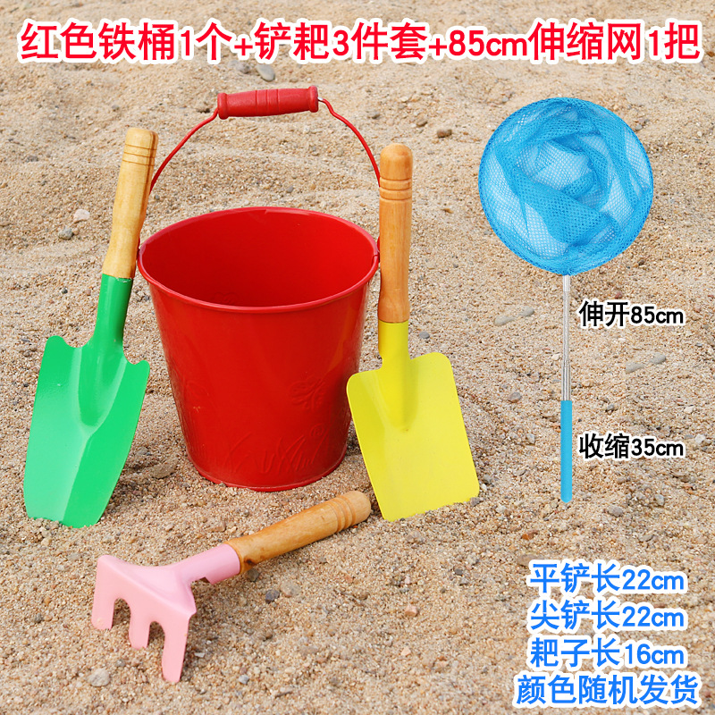 • 레드 철 양동이 + 삽 갈퀴 3 종 세트 + 텔레스코픽 낚시 그물 1 (85cm)