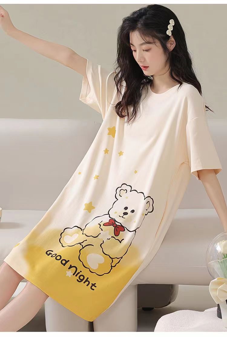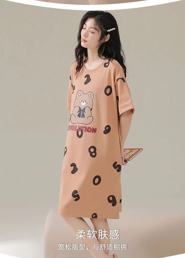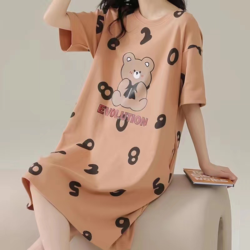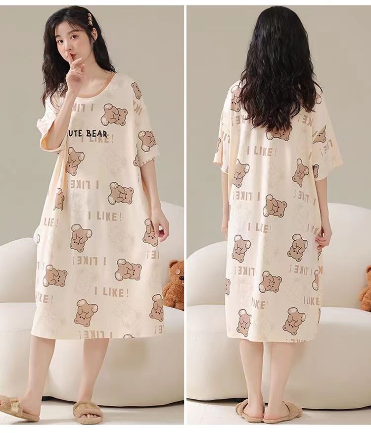 파자마 여성 2023 년 여름 새 반팔 학생 중간 길이의 잠옷 대형 스위트 홈 옷