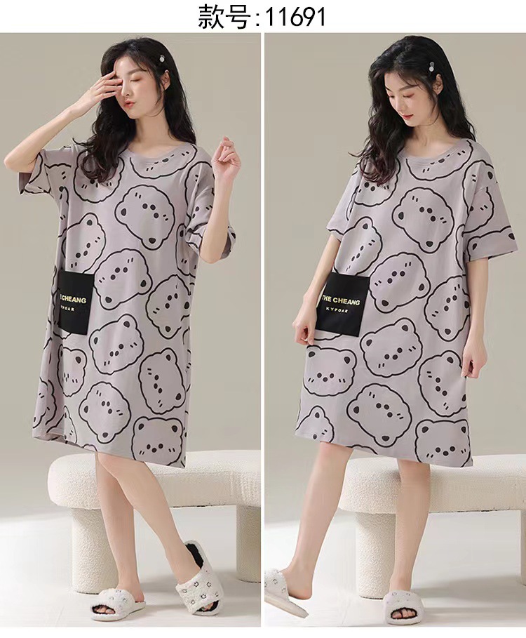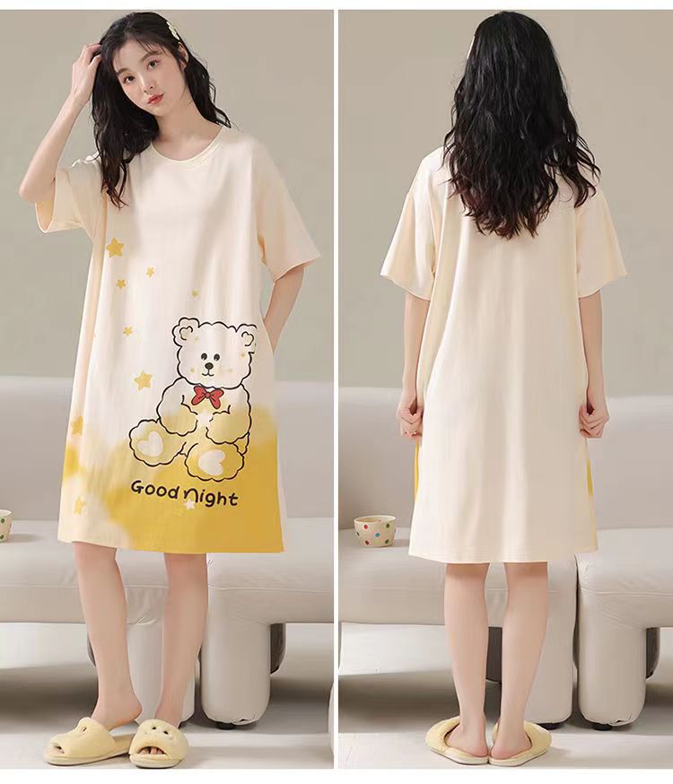 파자마 여성 2023 년 여름 새 반팔 학생 중간 길이의 잠옷 대형 스위트 홈 옷스토어 가기