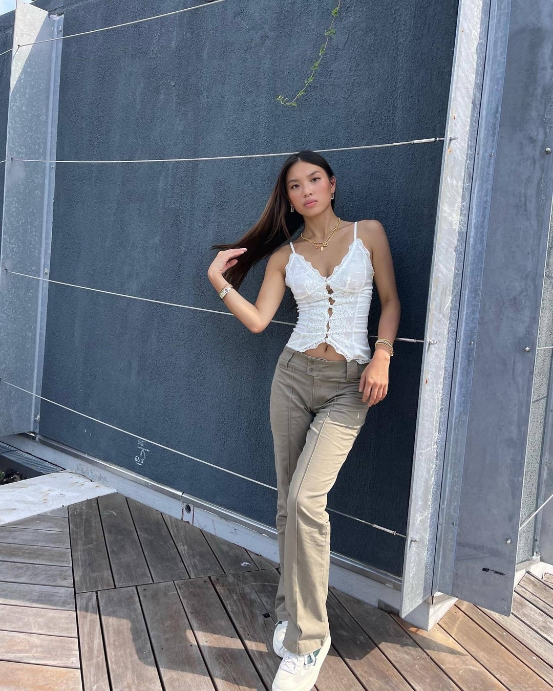 下摆蕾丝自由落在胯部非常好看。