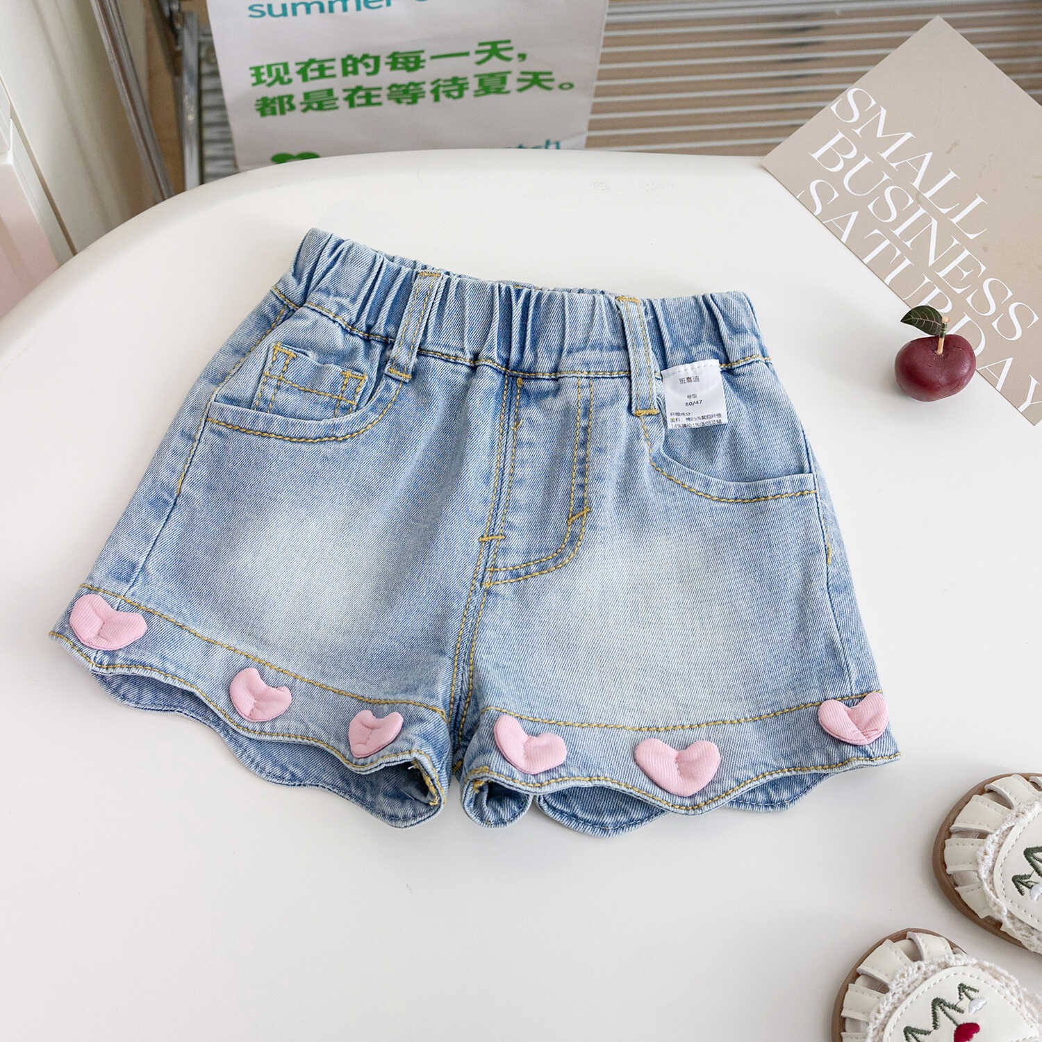 아동복 여아 한국식 세트 여름 뉴 심플 올 매치 데님 반바지 아동 세련된 투피스 세트스토어 가기