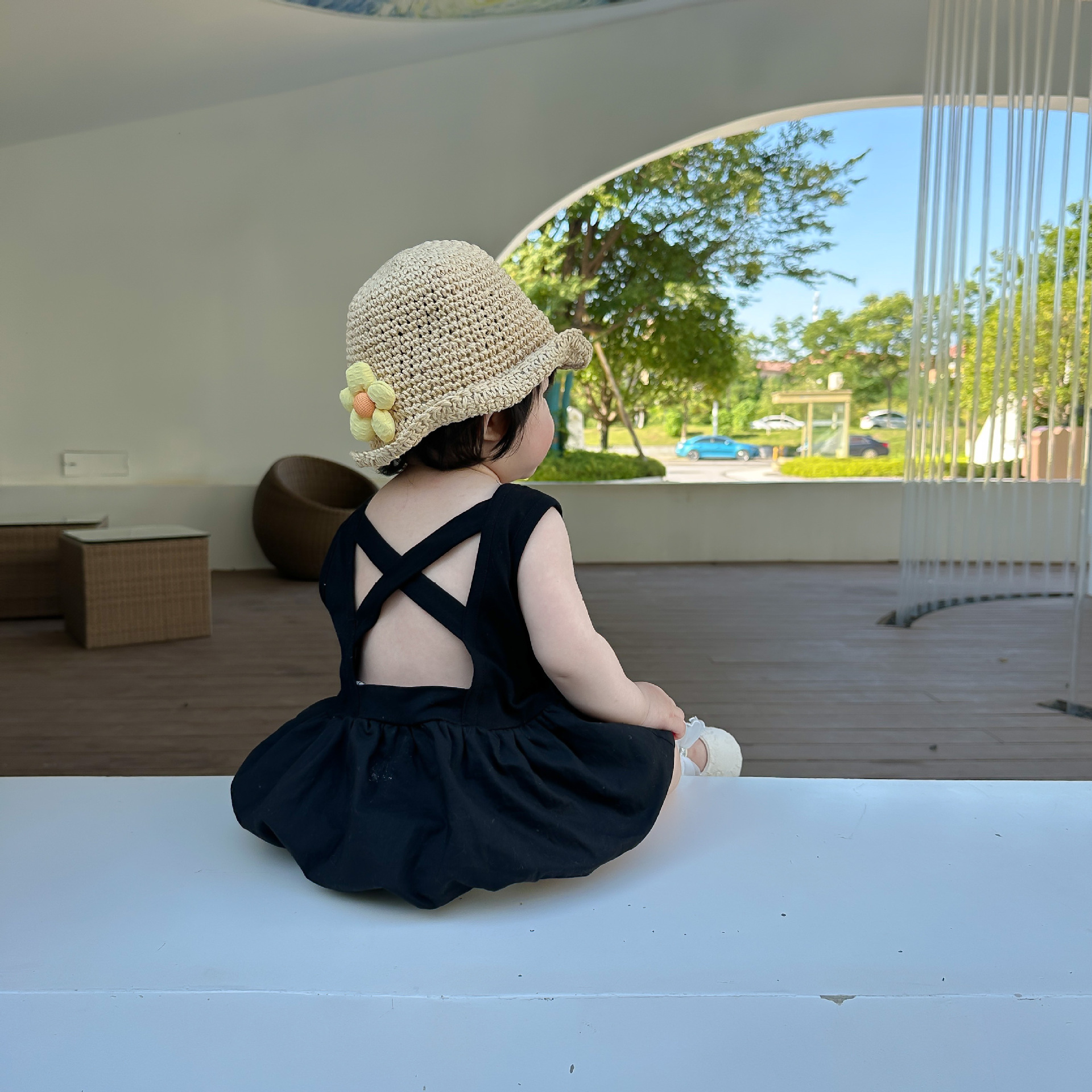 한국 스타일 단색 여름 크로스 오버 공주 투투 원피스 블랙 레이디 휴가를위한 귀여운 원피스스토어 가기
