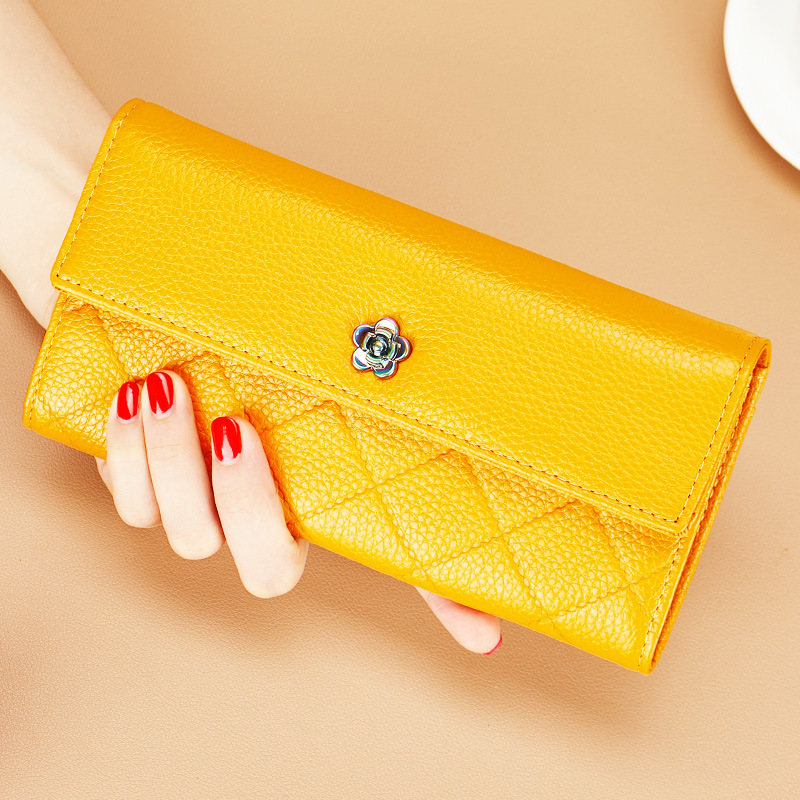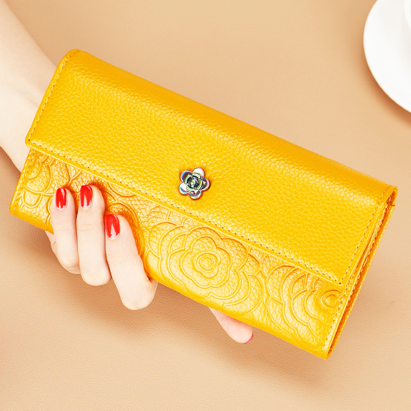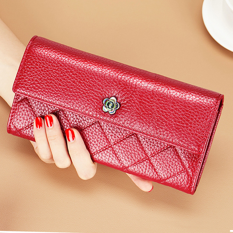 2026년 신형 동백꽃 여성용 장지갑, 천연 가죽, 1층 소가죽, 대용량, 클러치백, 정교하고 고급스러움