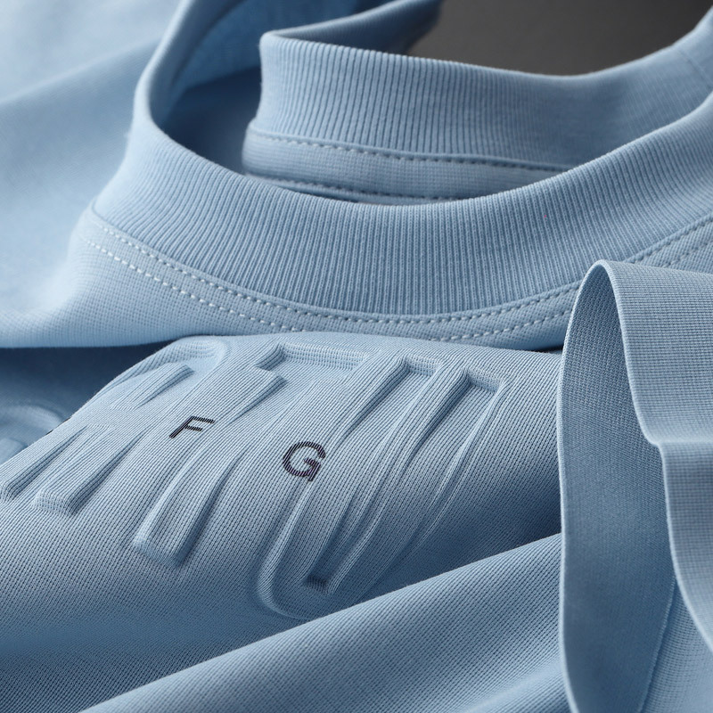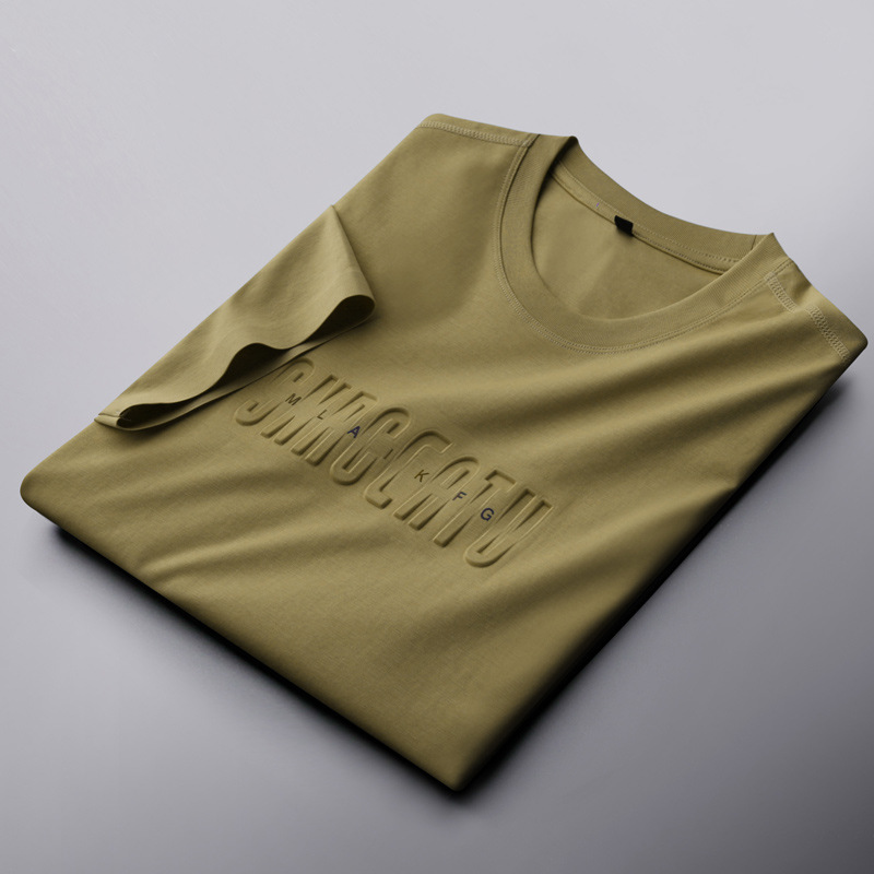 여름 원활한 Mercerized 면 단색 반팔 티셔츠 남성용 라운드 넥 고급 유럽 상품 볼록한 접착제 편지 얼음 실크 얇은 반 소매
