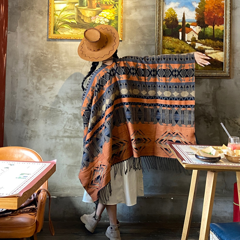 티베트 스카프 Lijiang 민족 스타일 여행 사진 케이프 여성용 보헤미안 이중 사용 두꺼운 따뜻한 숄스토어 가기
