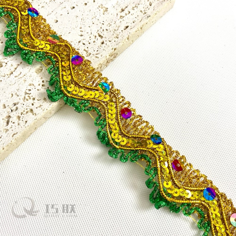 공장 재고 역 삼각형 금색과 실버 구슬 레이스 민족 축제 민속 장식 액세서리스토어 가기