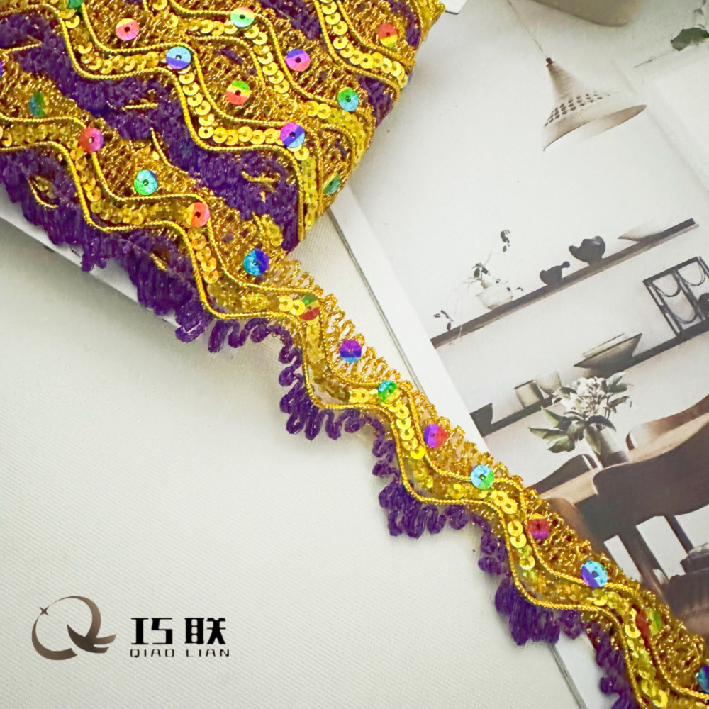 공장 재고 역 삼각형 금색과 실버 구슬 레이스 민족 축제 민속 장식 액세서리
