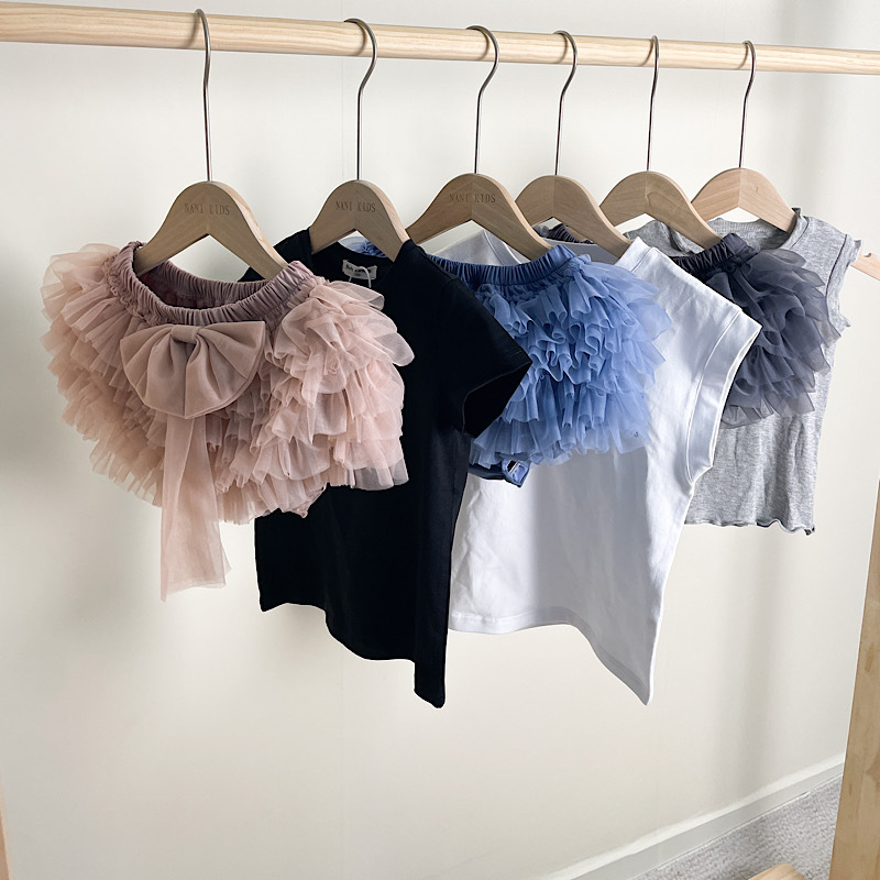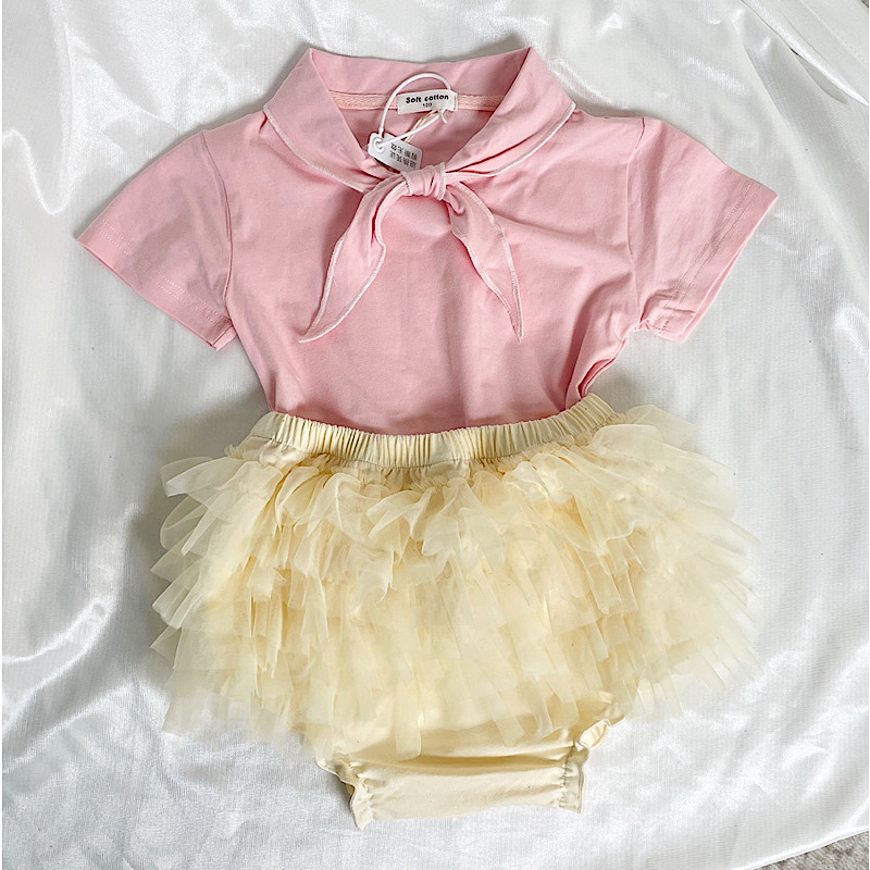 여자 23 여름 투투 스커트 여자의 포 달콤한 귀여운 메쉬 보우 바지 스커트 세트