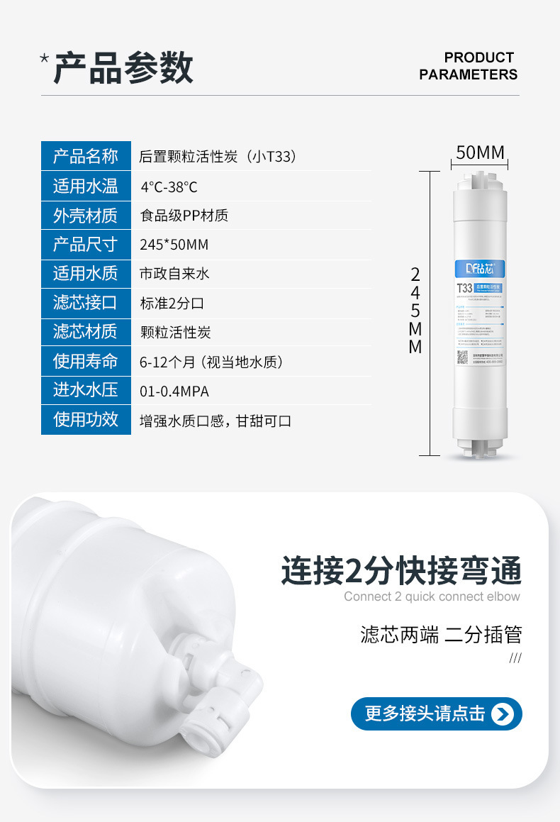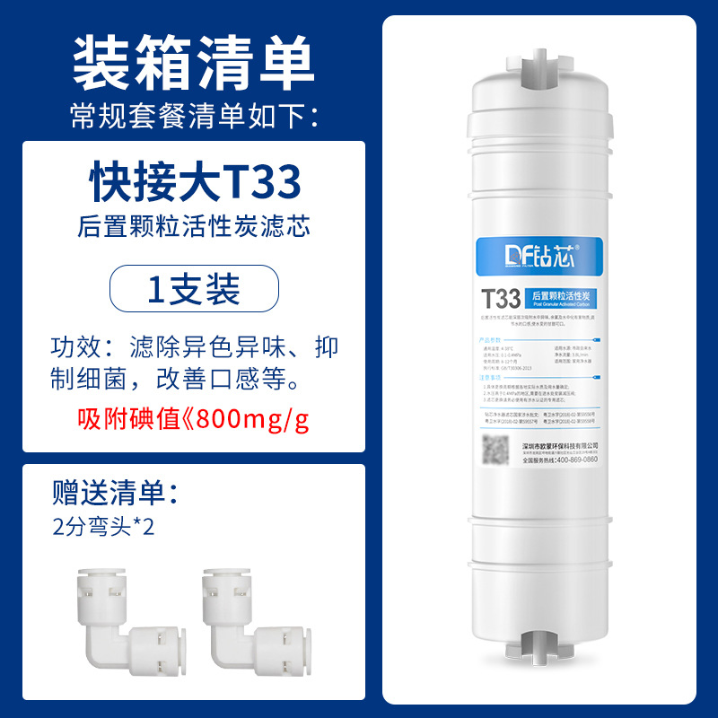 가정용 역삼투압 정수기 후면 필터 카트리지 T33 활성탄 10inch 범용 순수기 정수기 필터 카트리지
