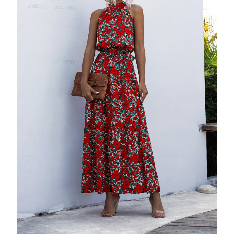 2023 국경 간 폭발 이베이 아마존 독립 역 물방울 무늬 프린트 넥 스트랩 원피스 비치 원피스스토어 가기