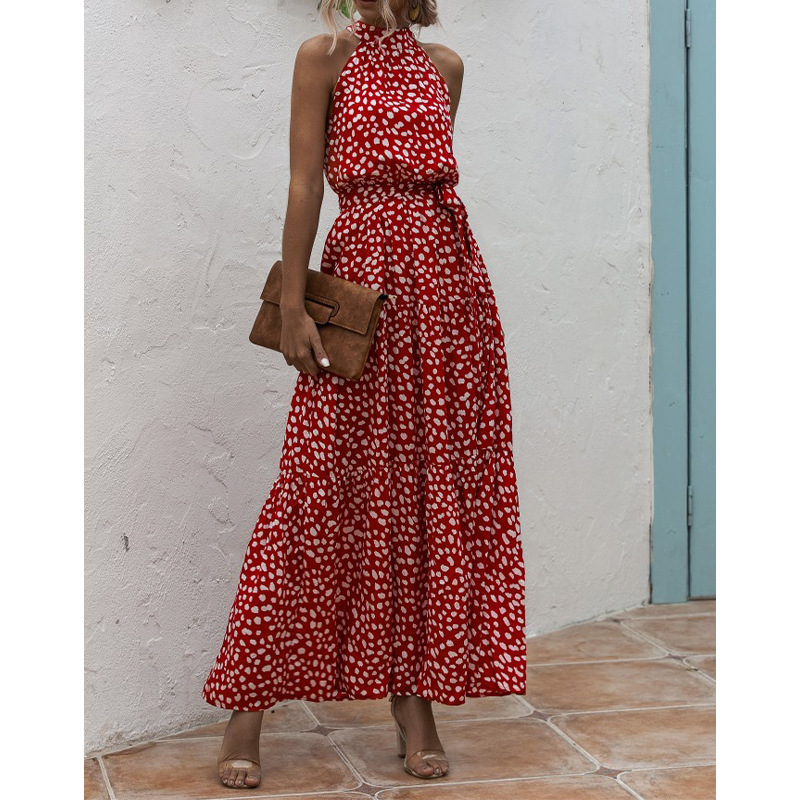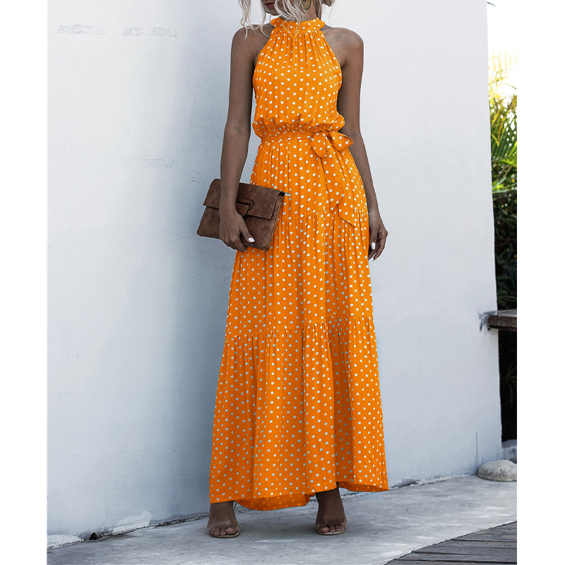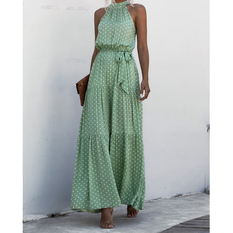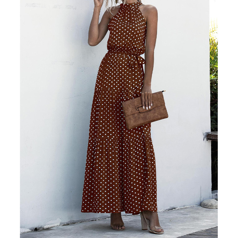2023 국경 간 폭발 이베이 아마존 독립 역 물방울 무늬 프린트 넥 스트랩 원피스 비치 원피스