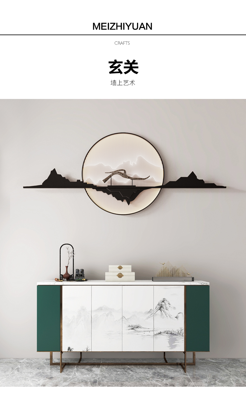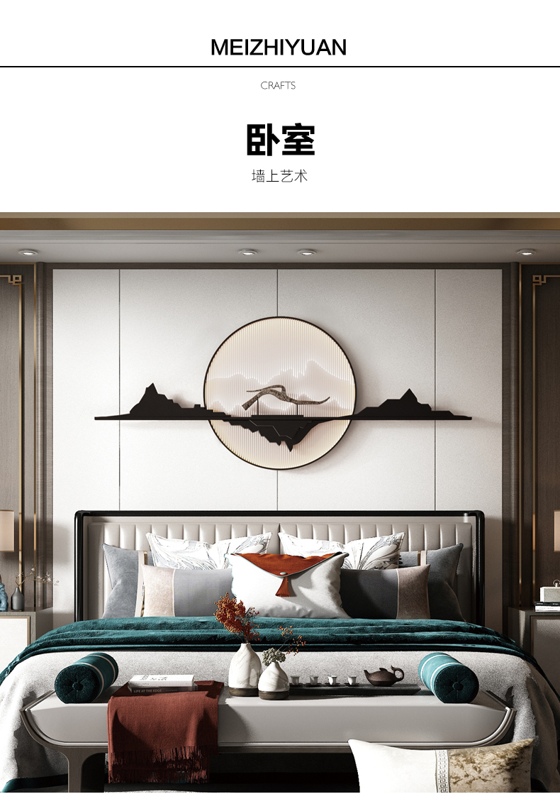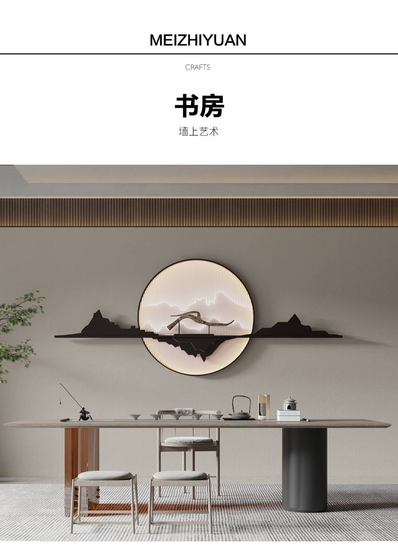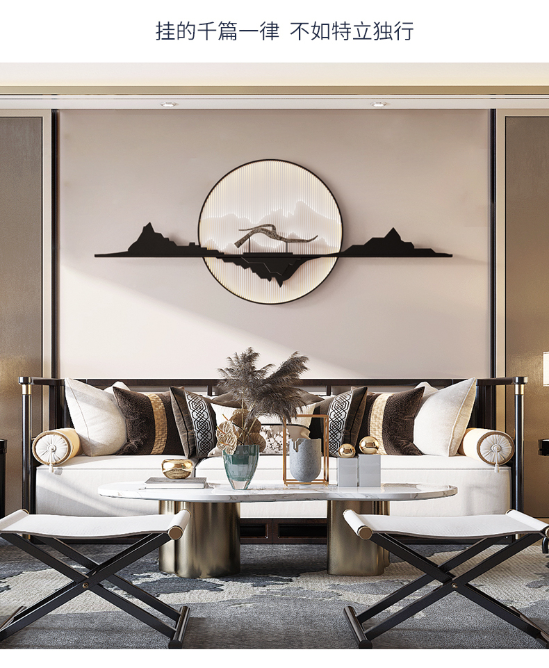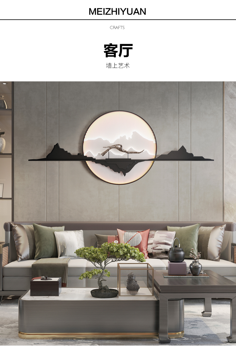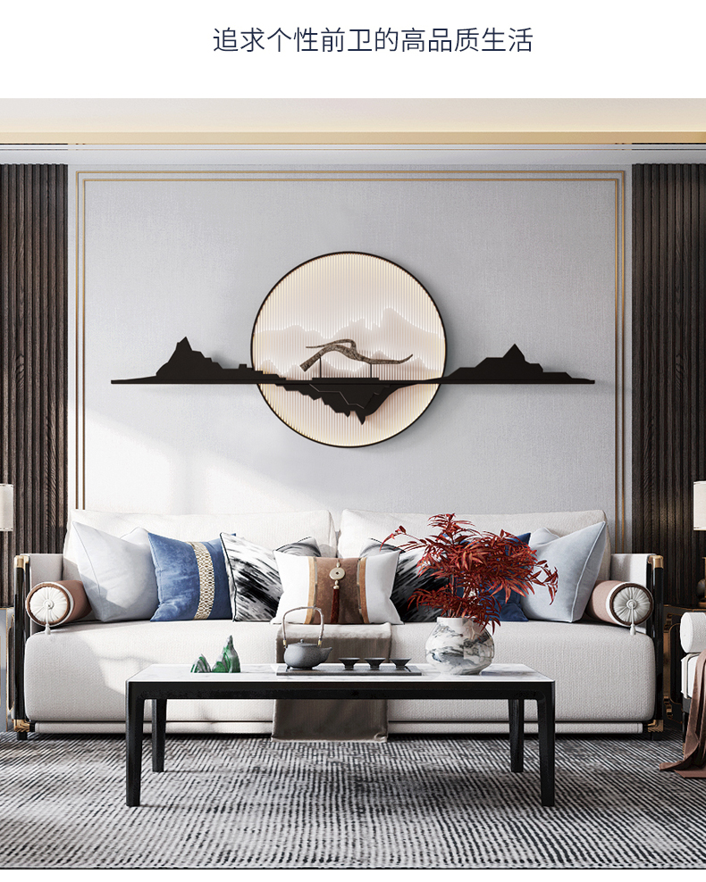 새로운 중국 스타일 벽 장식 벽걸이 거실 소파 배경 벽 장식 램프 산 그림자 펜던트 부드러운 장식 모델 룸