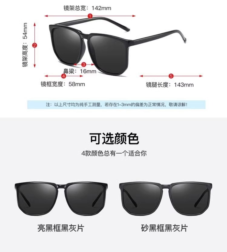 새로운 레트로 블랙 슈퍼 선글라스 트렌디 한 남성과 여성의 편광 선글라스 패션 일반 얼굴 운전 태양 보호 자외선 차단