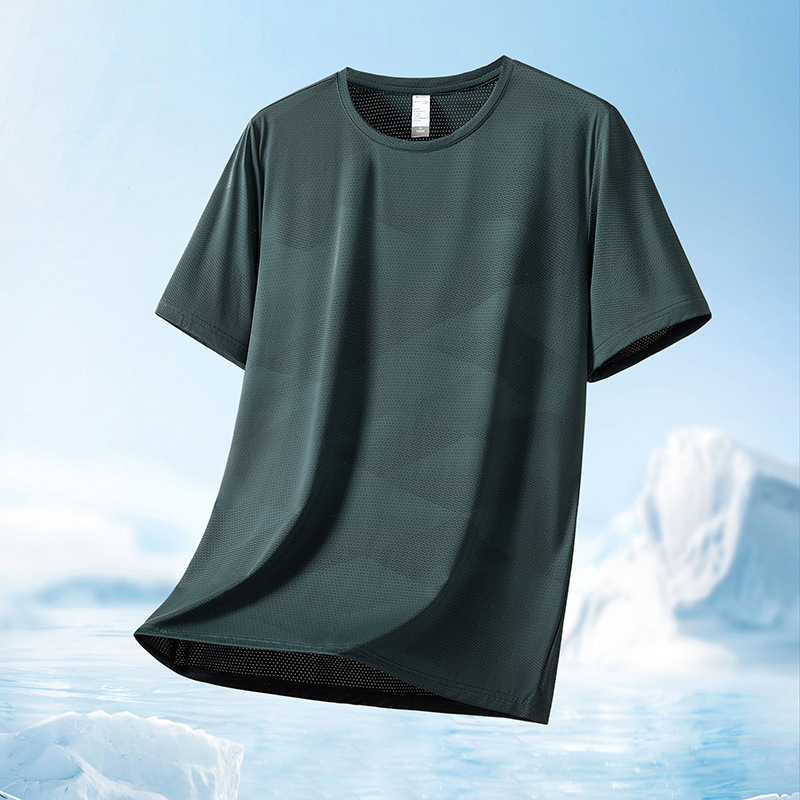 반팔 남성 티셔츠 여름 얇은 느슨한 캐주얼 아이스 실크 속건 티셔츠 남성용 러닝 스포츠 탑 남성 패션