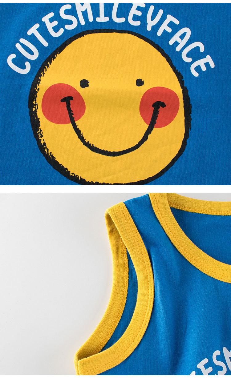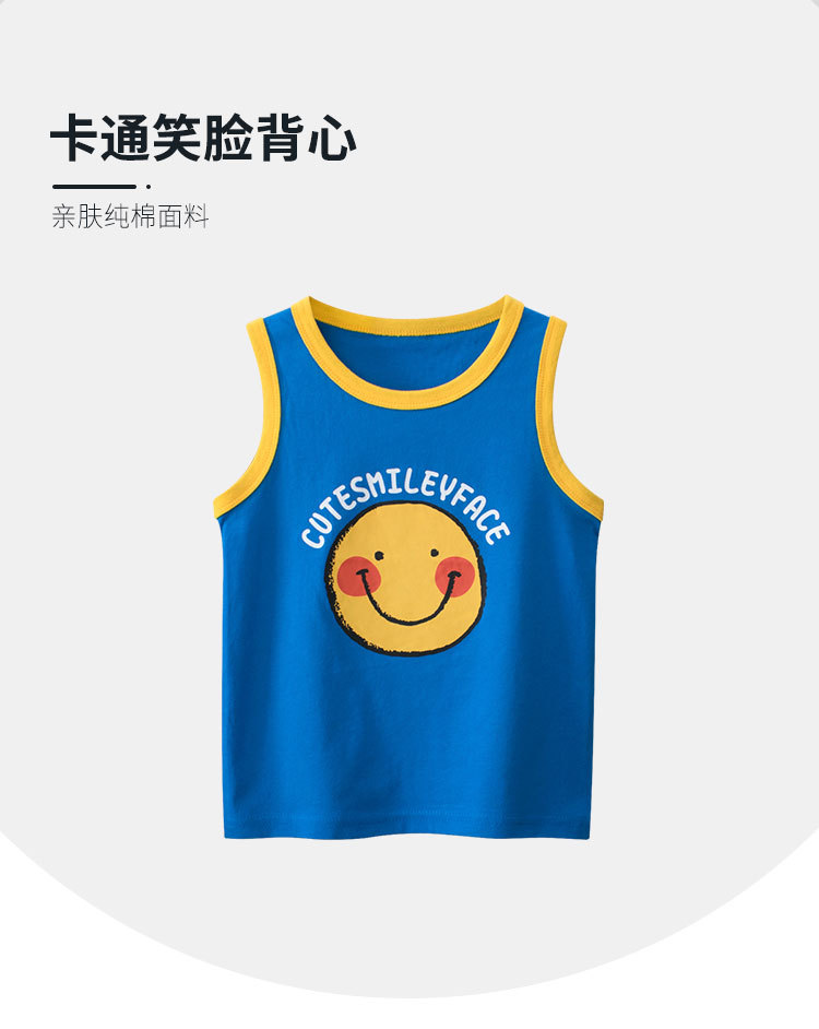 27 키즈 아동 조끼 여름 새 남자 아기 옷 도매 스마일 얼굴 민소매 하의 셔츠 1 차 공급