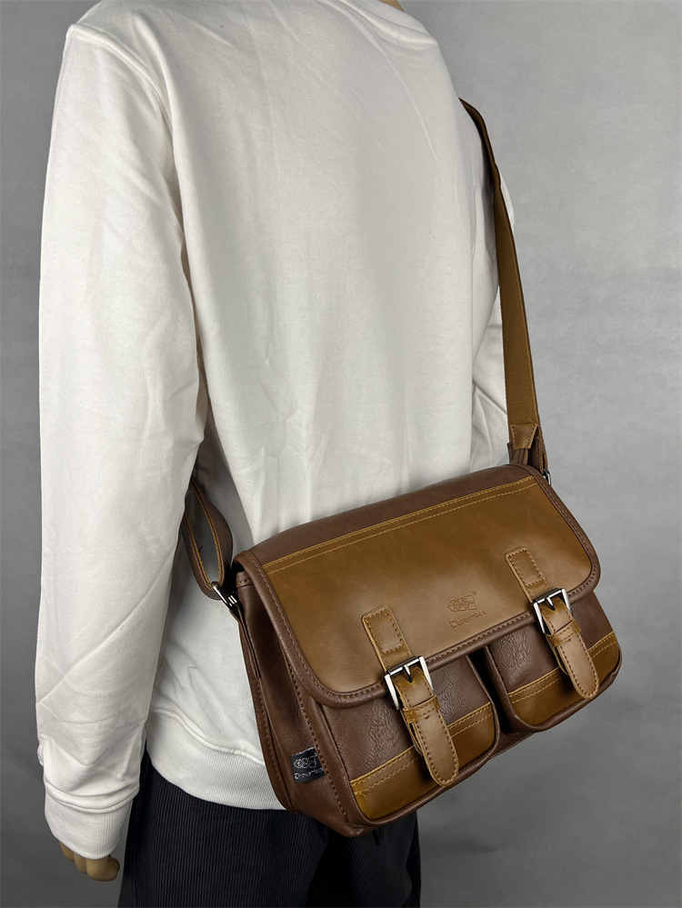 2023新款潮男斜挎包 日韩潮牌复古单肩包 男士邮差包机车包学生包