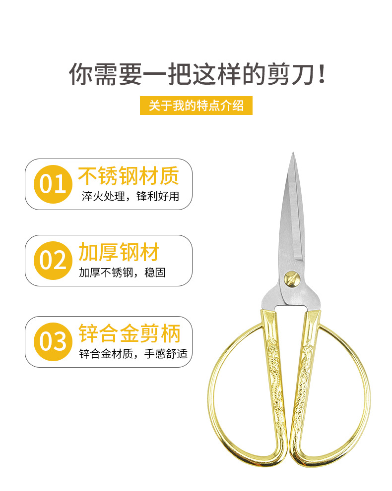 스테인레스 스틸 드래곤과 피닉스 Chengxiang 가위 축제 용과 피닉스 가위 열기 리본 절단 가위 홈 재단사 레트로 작은 가위