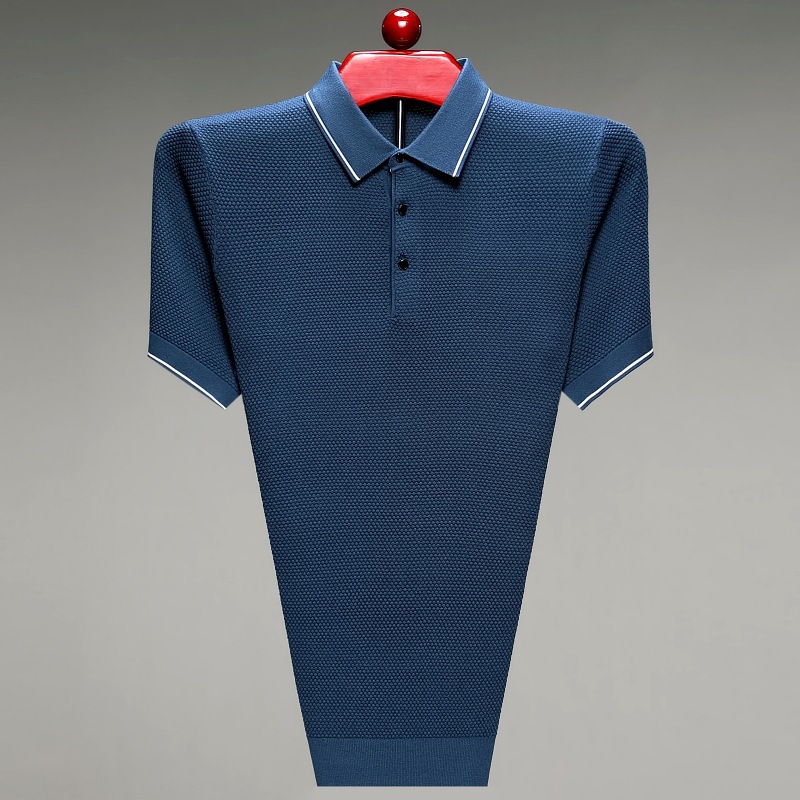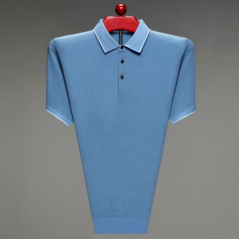 재고 중년 및 노인 아빠 옷 비즈니스 캐주얼 2023 남자 티셔츠 옷깃 단색 우아한 통기성 메쉬 짧은 소매