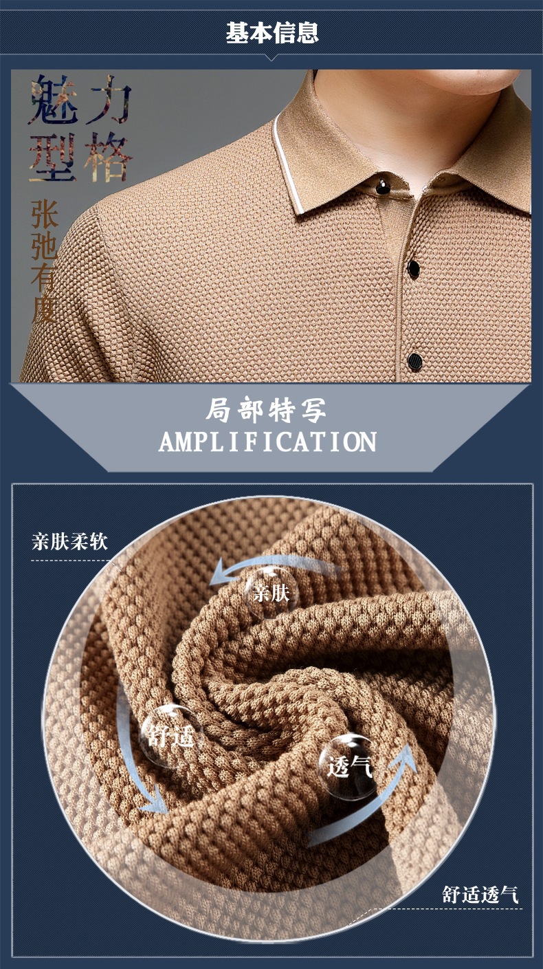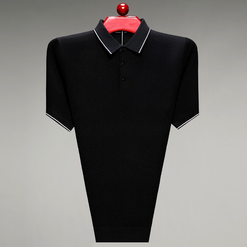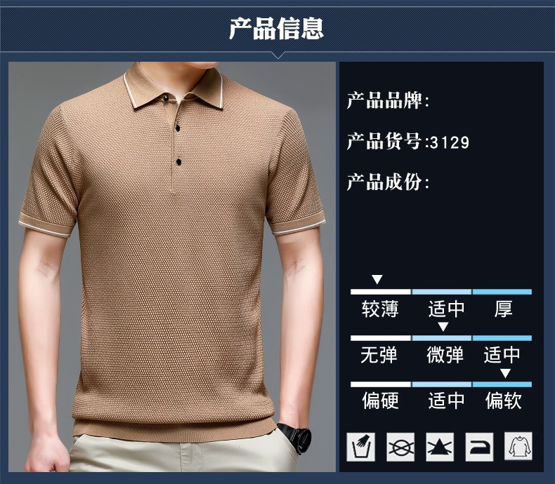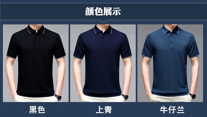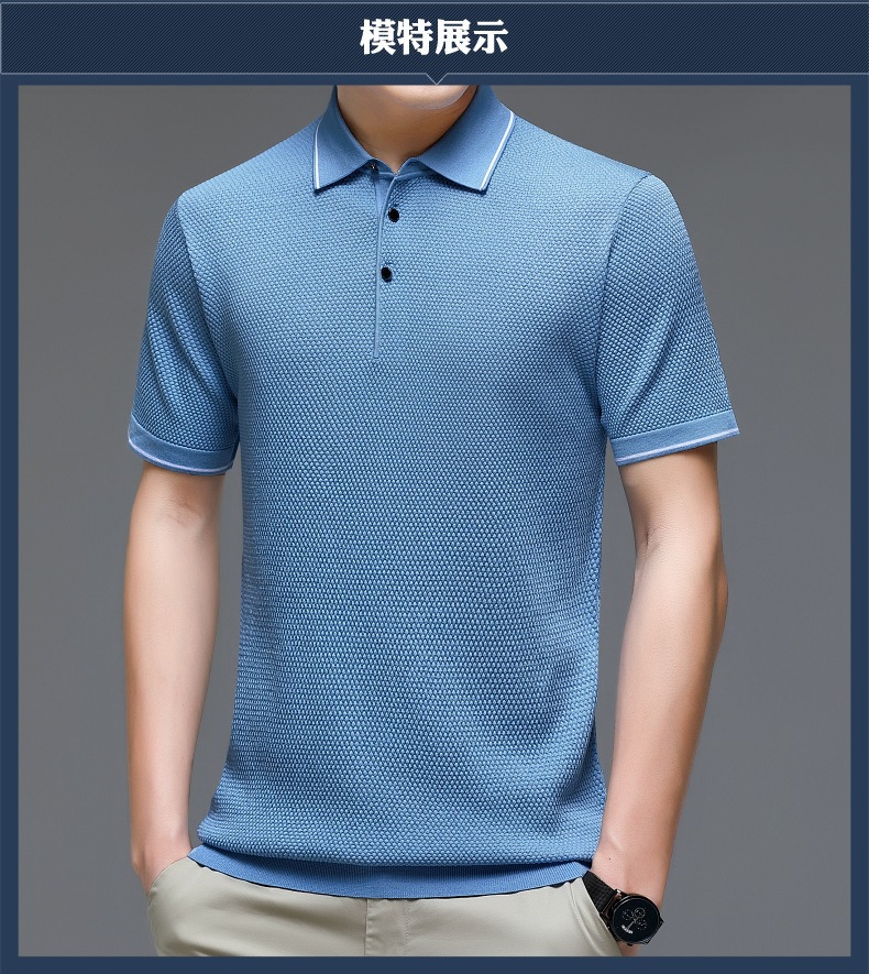 现货中老年爸爸装商务休闲百搭男式T恤翻领纯色气质透气网眼短袖