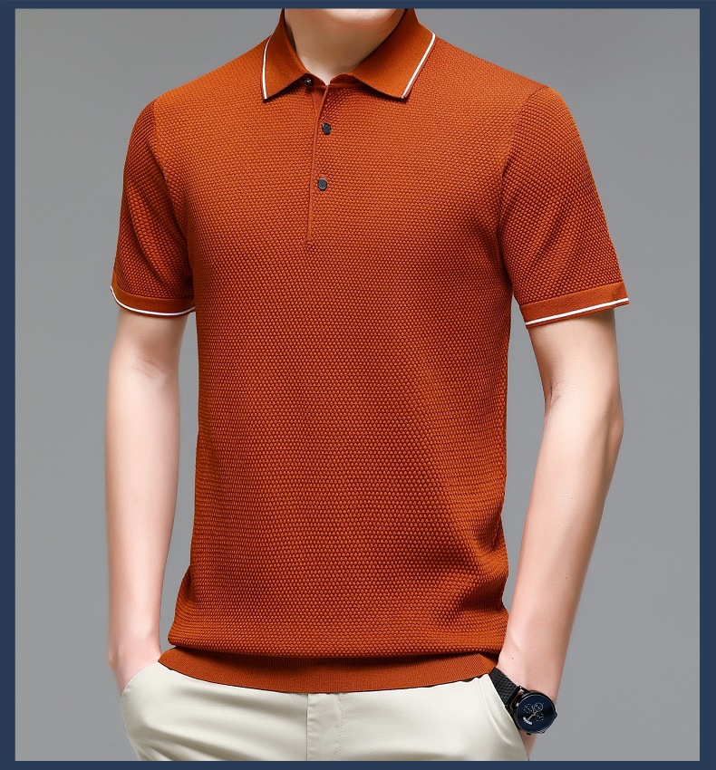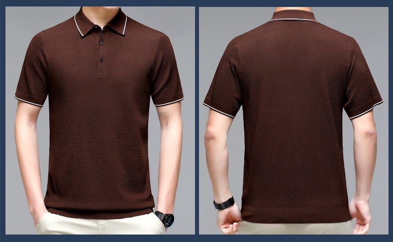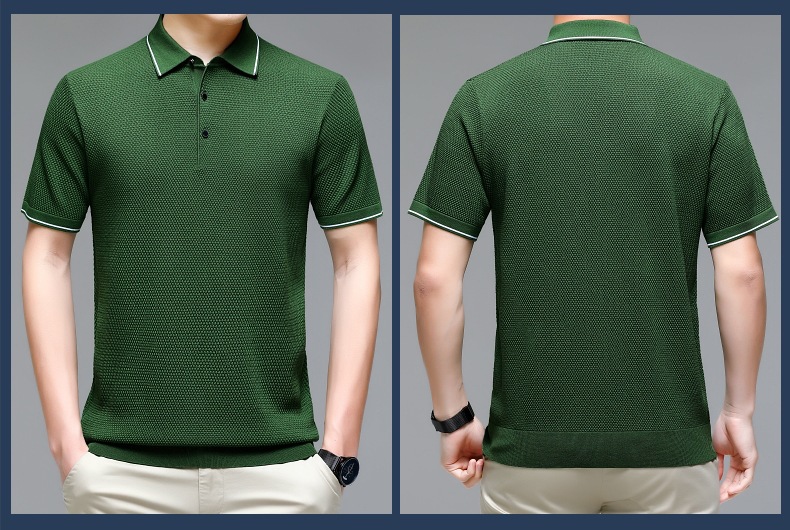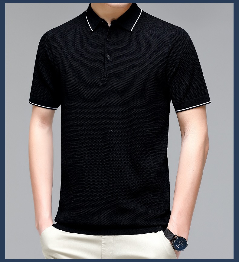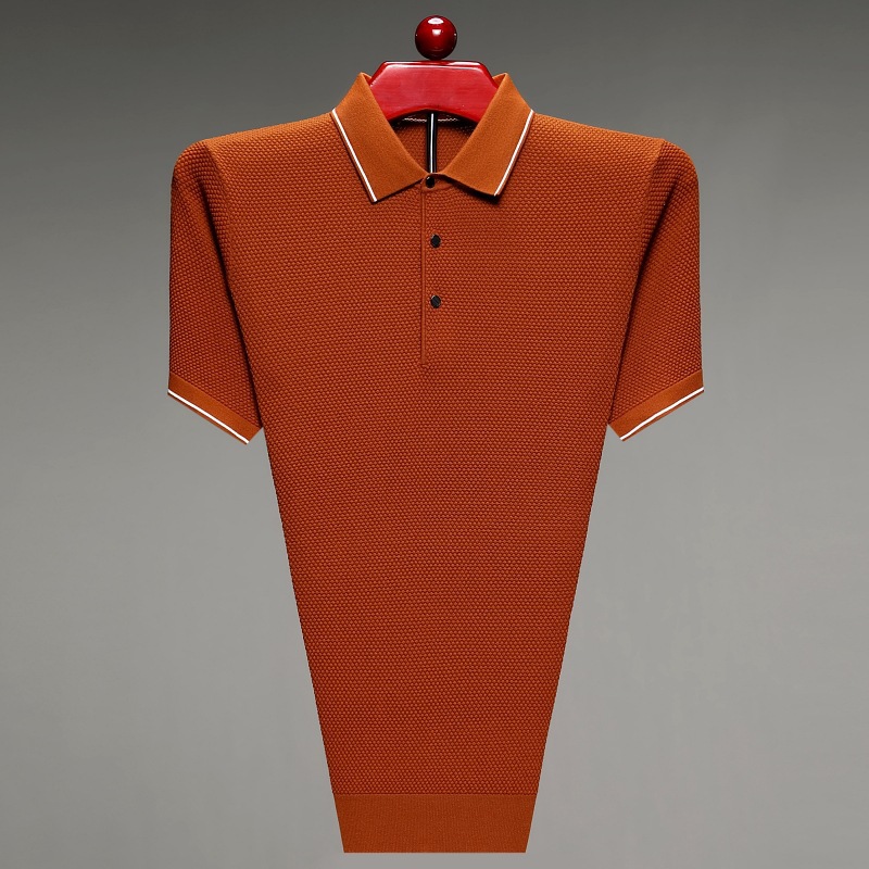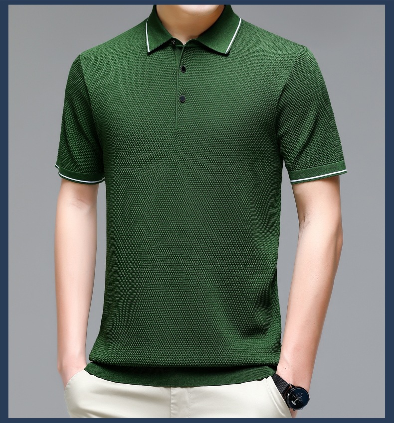 现货中老年爸爸装商务休闲百搭男式T恤翻领纯色气质透气网眼短袖