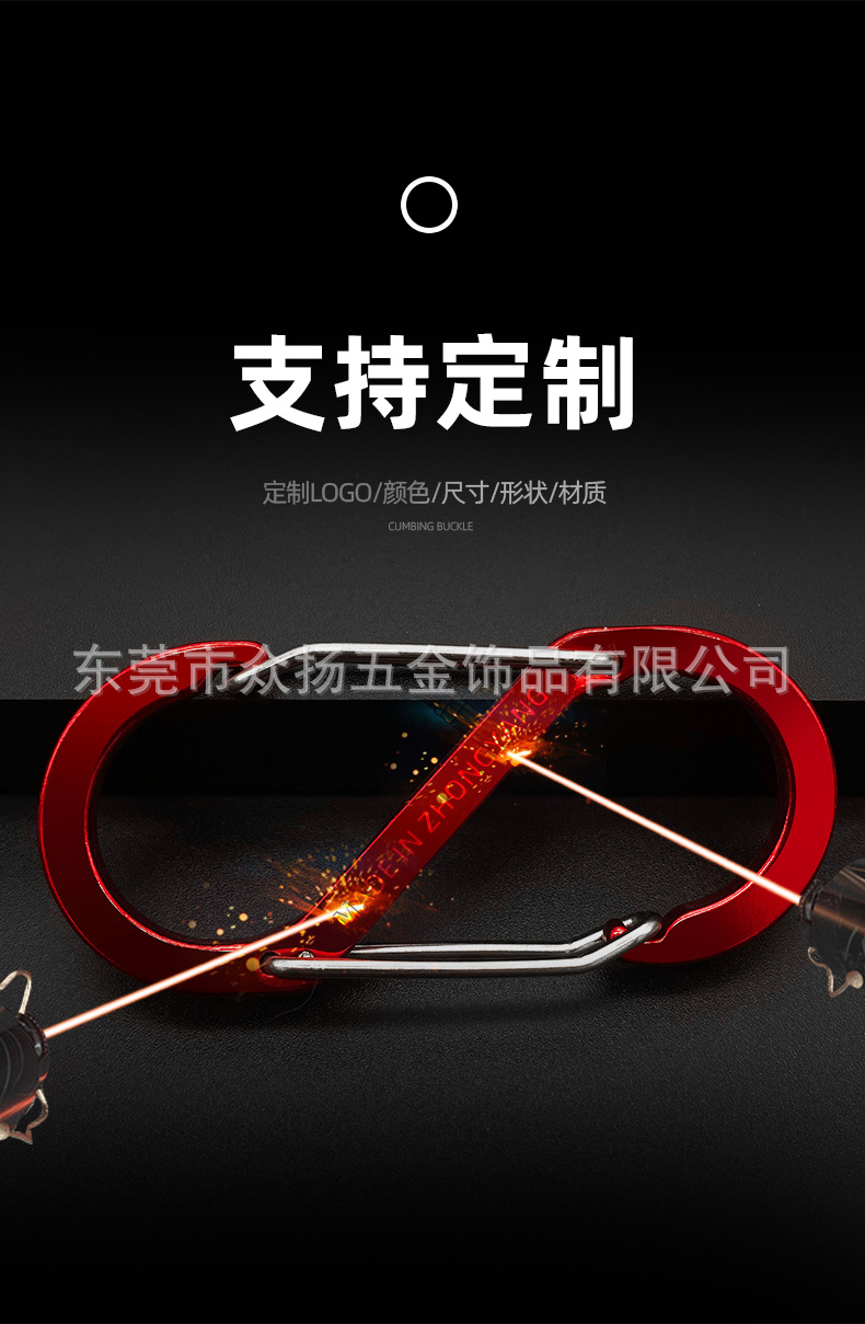 등산 버클 제조사 8 자 안전 버클 등산 후크 알루미늄 합금 등산 버클 등산 버클 물병 버클 야외 버클