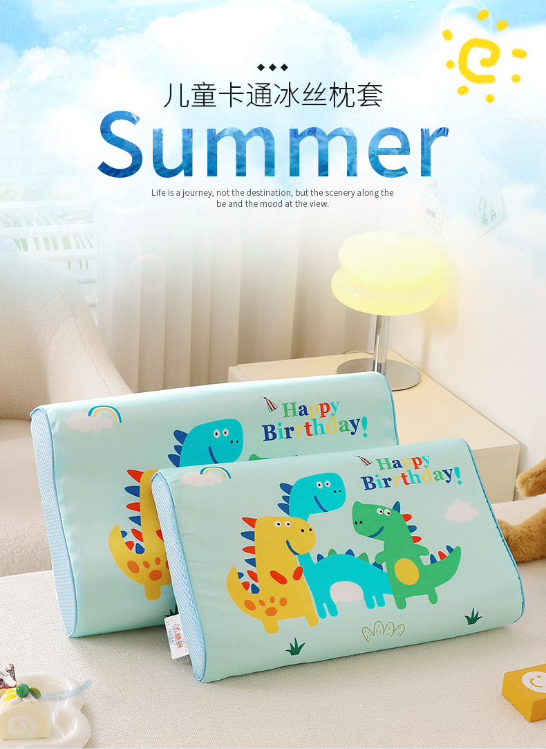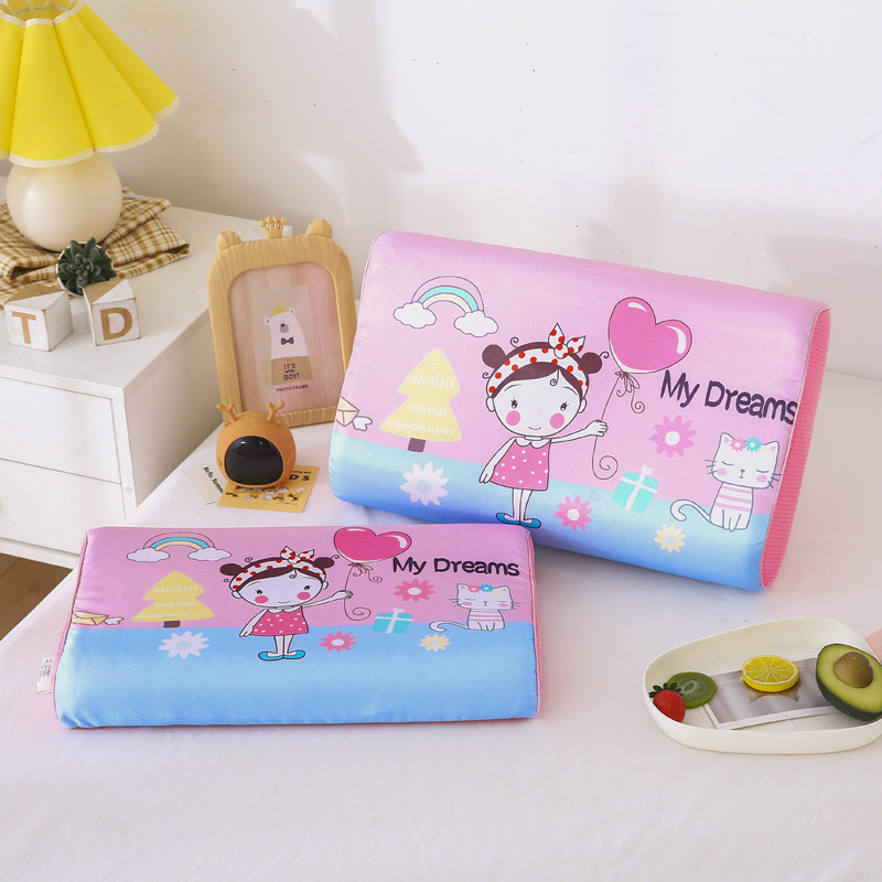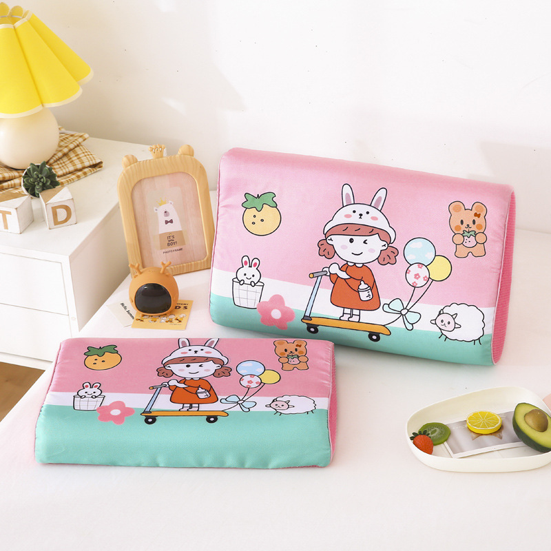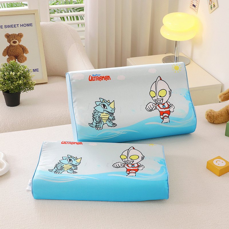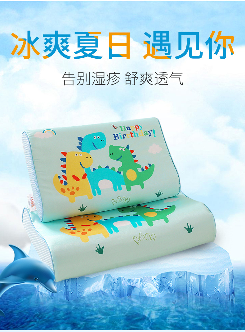 만화 얼음 실크 어린이 라텍스 베개 여름 학생 유아 가정용 라텍스 베개 천연 목 보호 베개 통기성