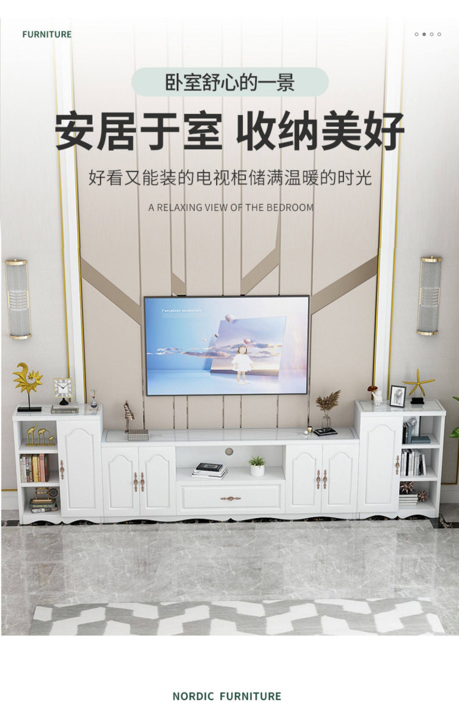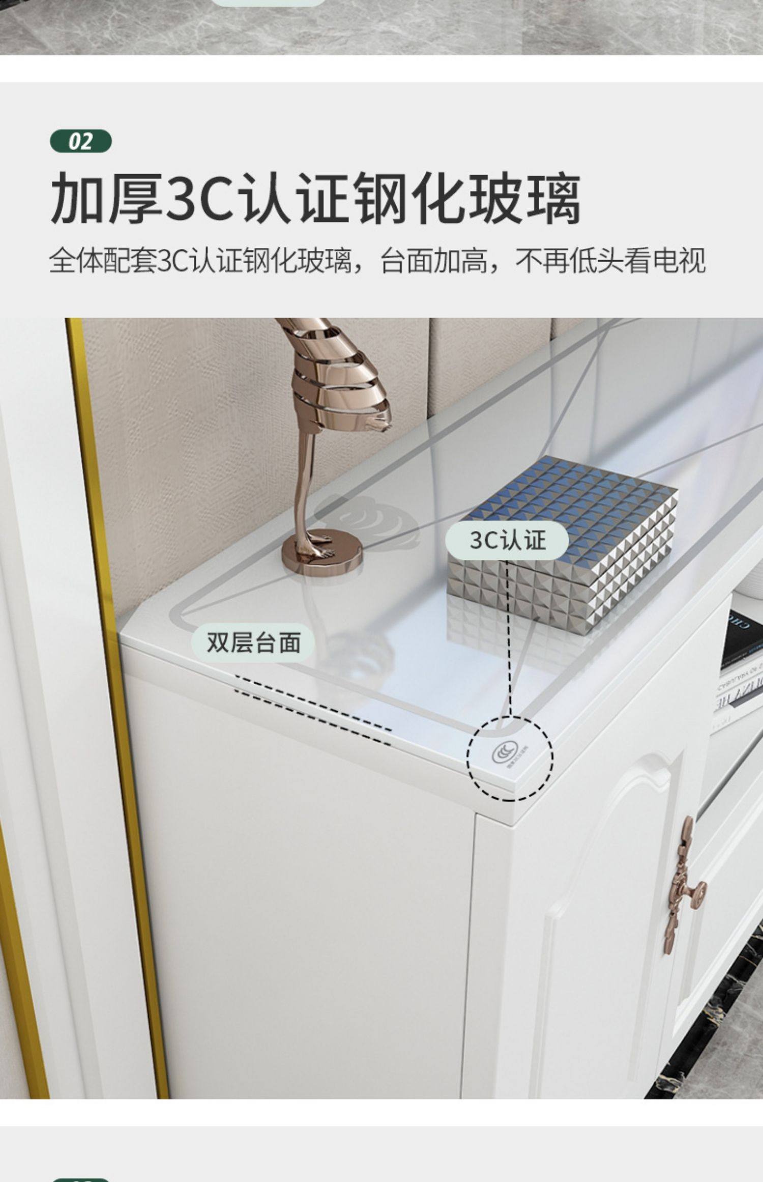 • 120 따뜻한 흰색 TV 캐비넷 [3c 강화 유리면을 보내]
