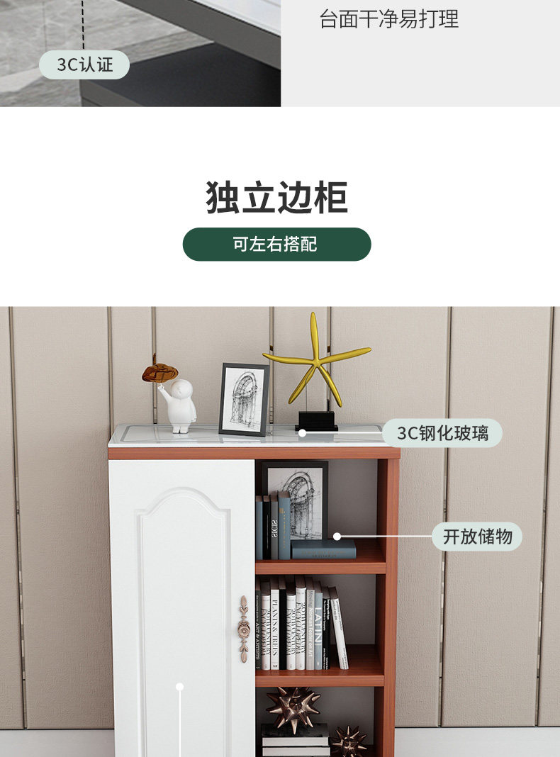 • 180 따뜻한 흰색 조합 120 캐비닛 + 사이드 캐비닛 [3c 강화 유리 표면을 보내]