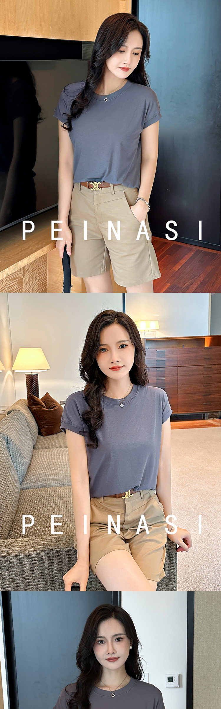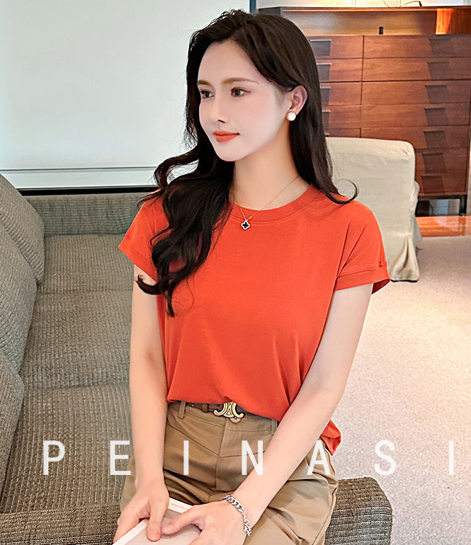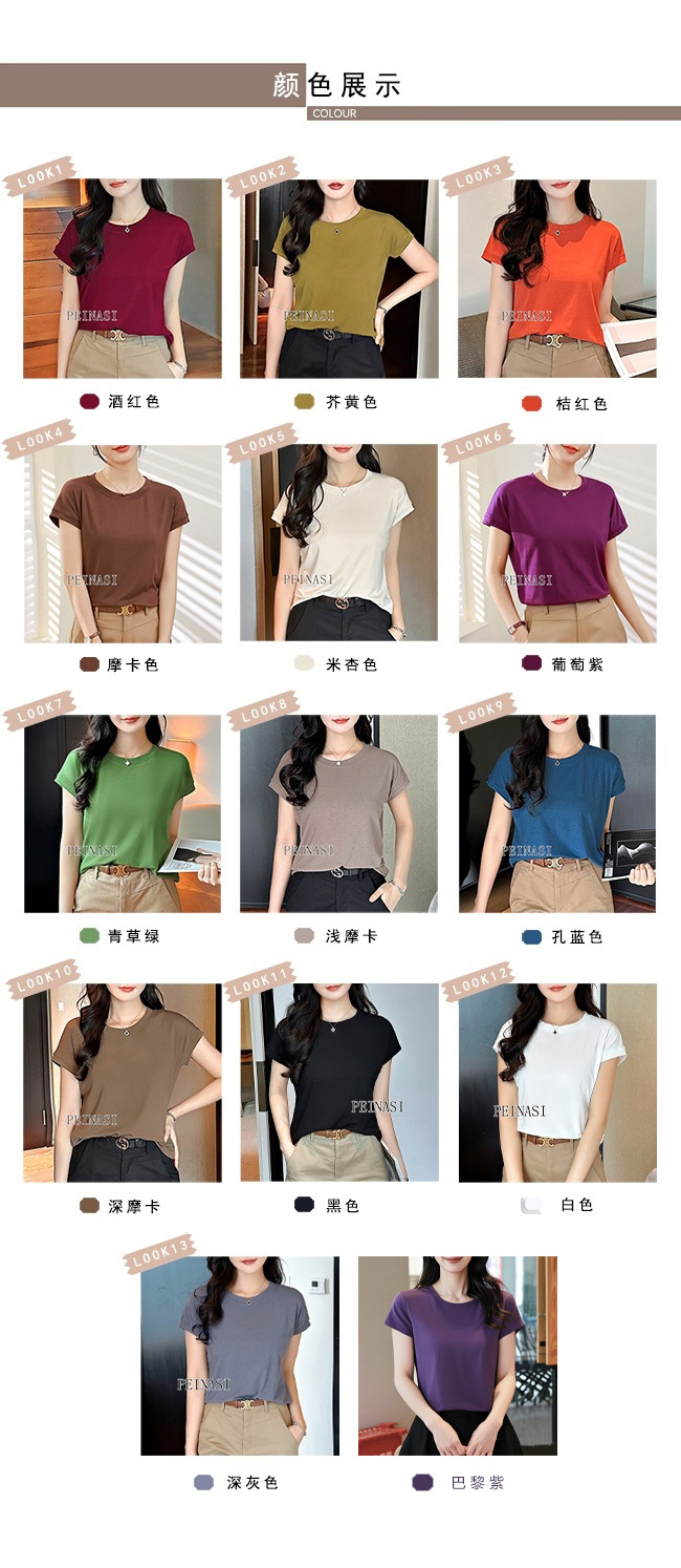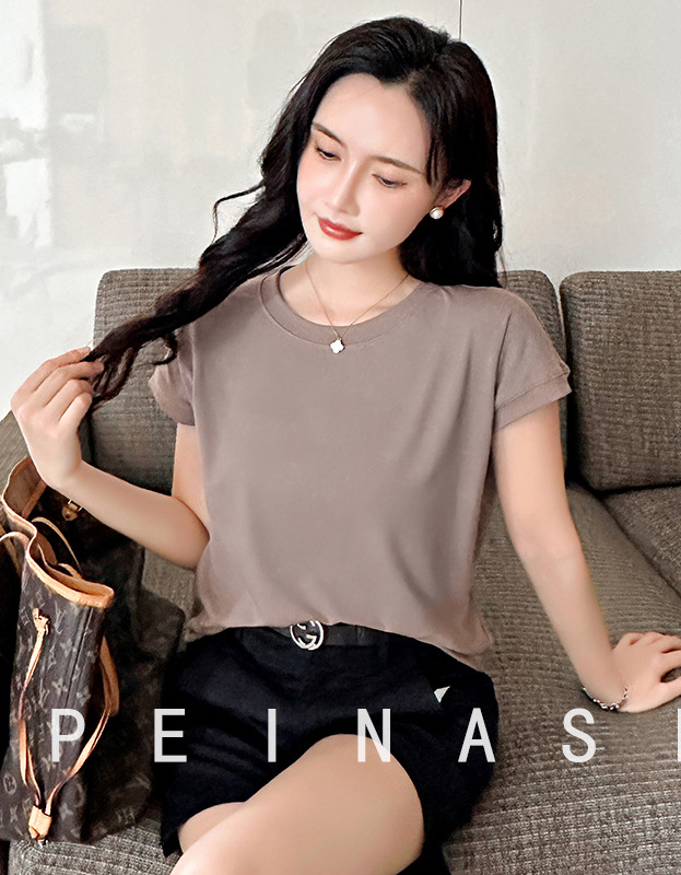 Feifei 소매 반팔 티셔츠 여성 260g 작은 Feifei 소매 단색 조명 버전 소매 유럽 상품 재킷베이스 셔츠 세대스토어 가기