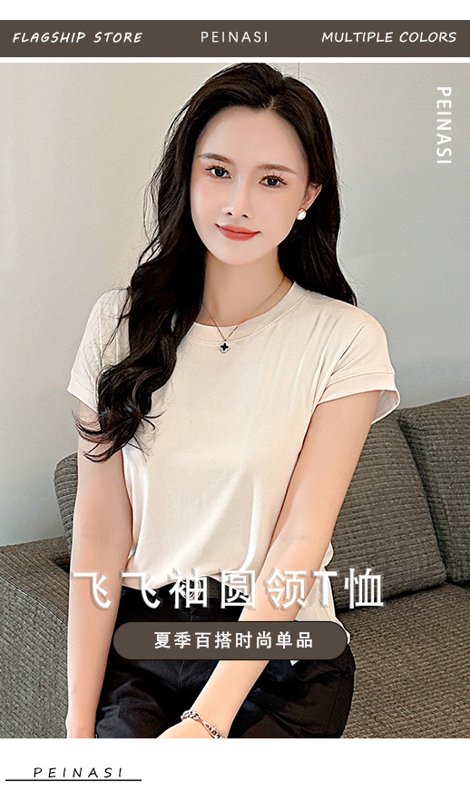 Feifei 소매 반팔 티셔츠 여성 260g 작은 Feifei 소매 단색 조명 버전 소매 유럽 상품 재킷베이스 셔츠 세대