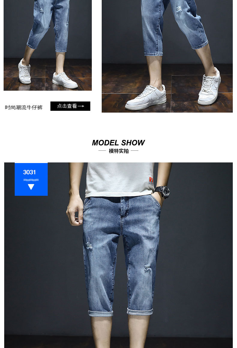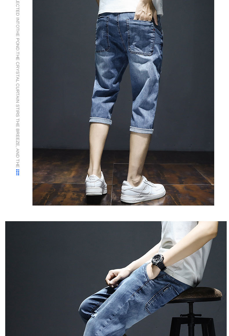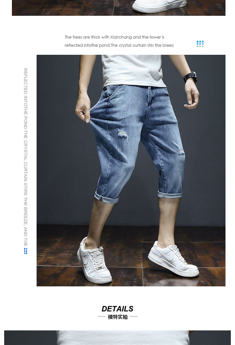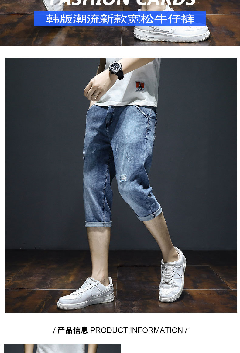 크롭 데님 반바지 남자의 여름 얇은 유행 느슨한 크롭 한국 스타일 유행 캐주얼 크롭 바지스토어 가기