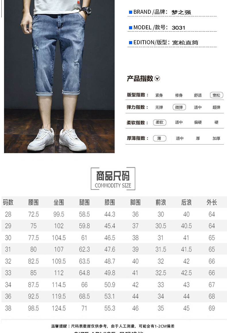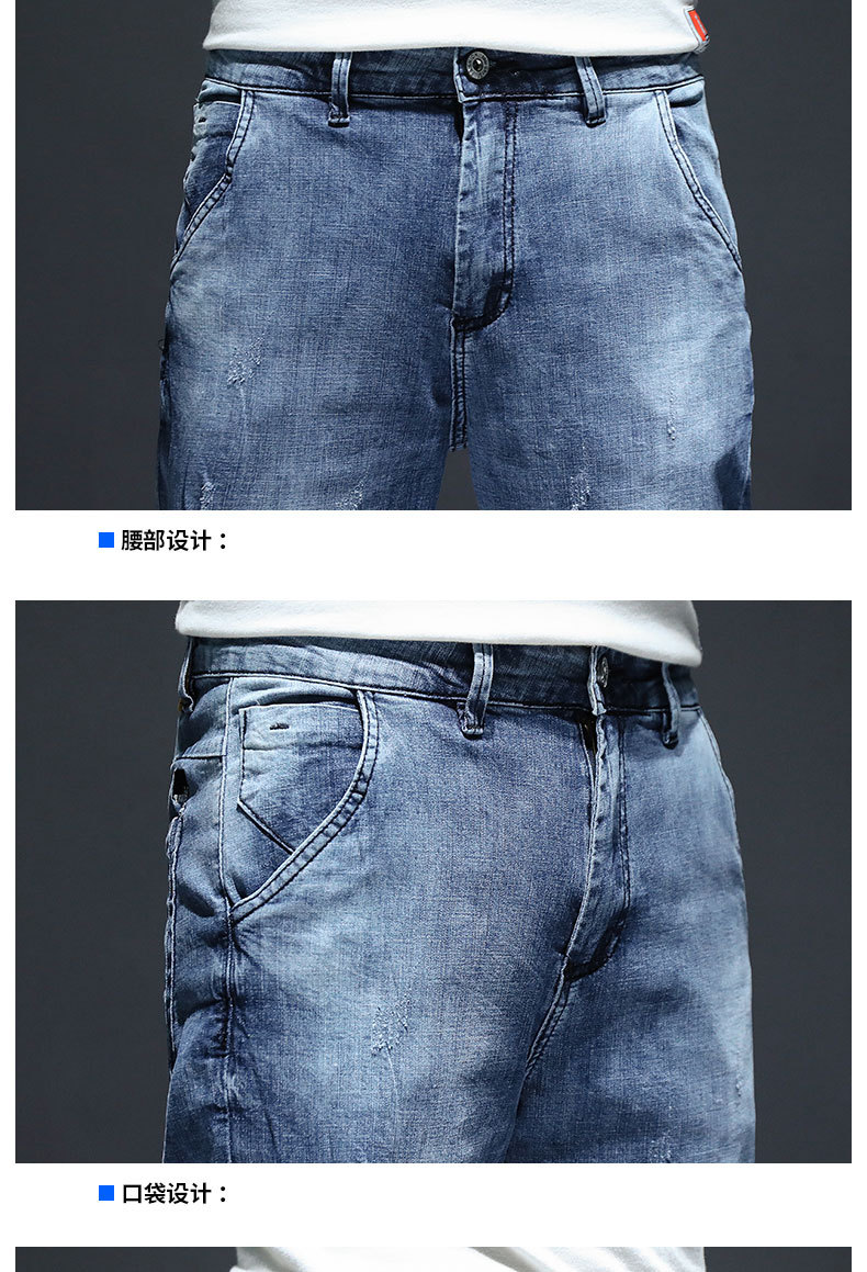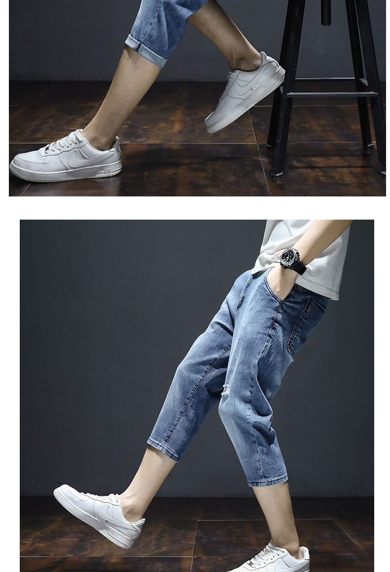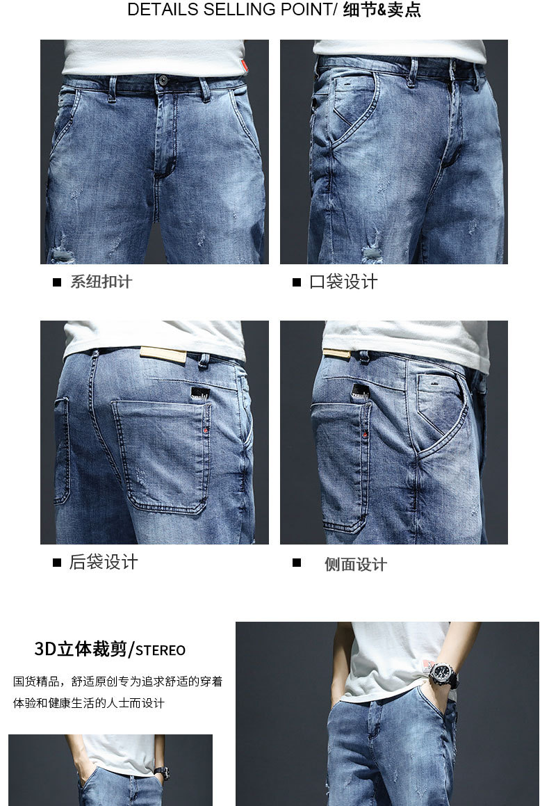 크롭 데님 반바지 남자의 여름 얇은 유행 느슨한 크롭 한국 스타일 유행 캐주얼 크롭 바지스토어 가기