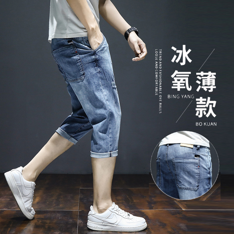 크롭 데님 반바지 남자의 여름 얇은 유행 느슨한 크롭 한국 스타일 유행 캐주얼 크롭 바지